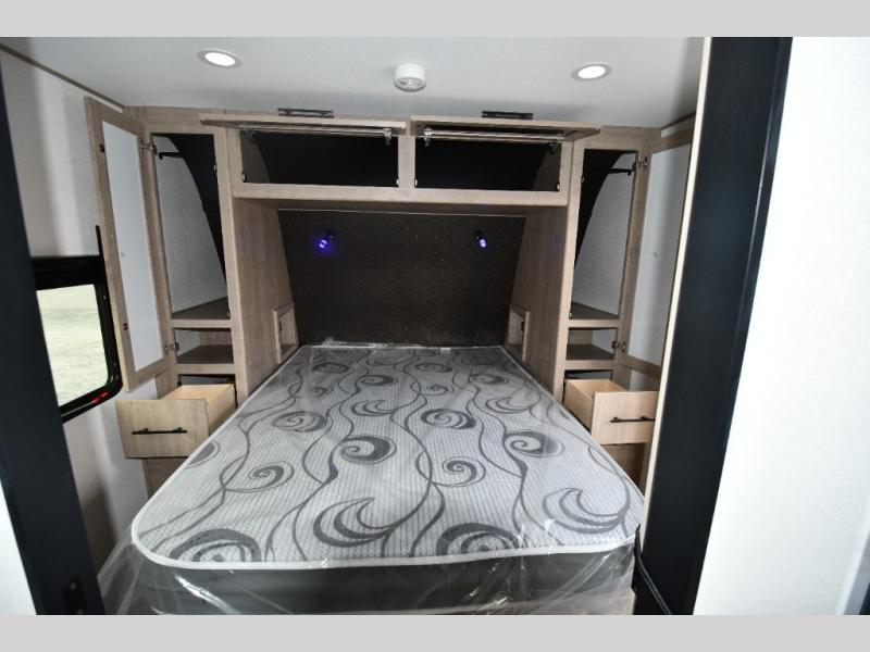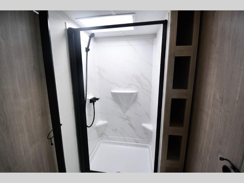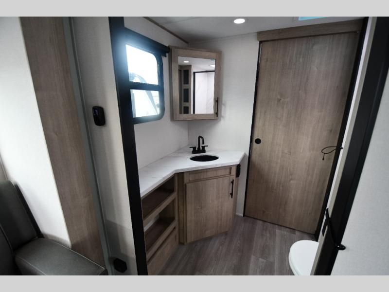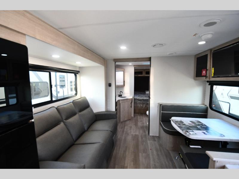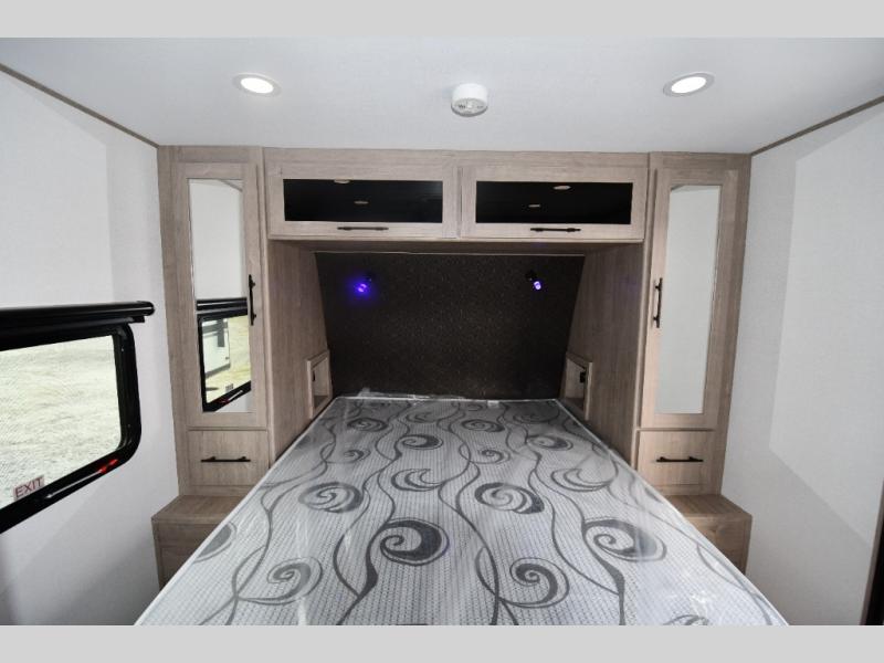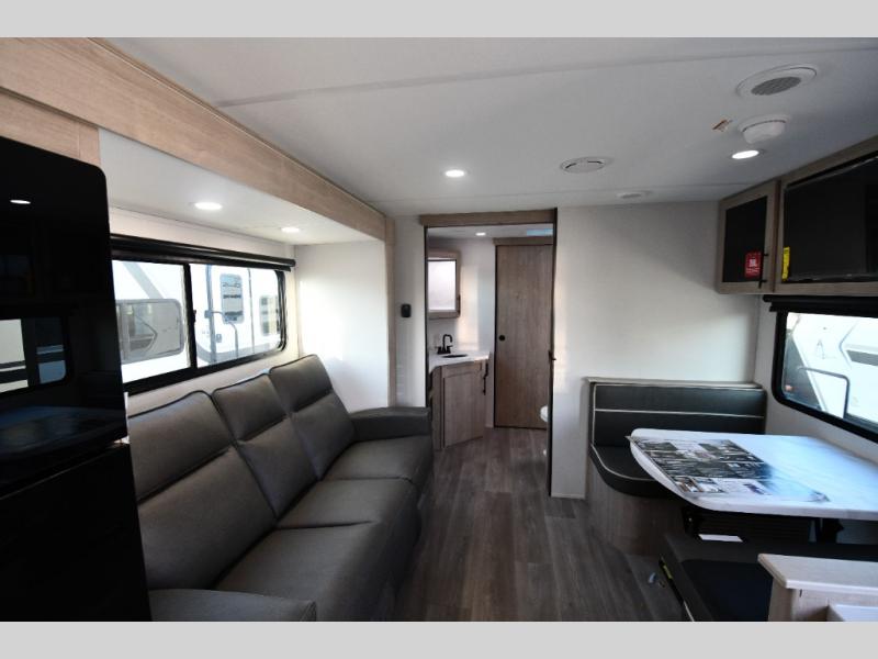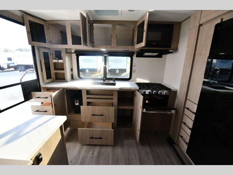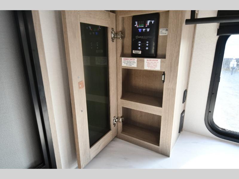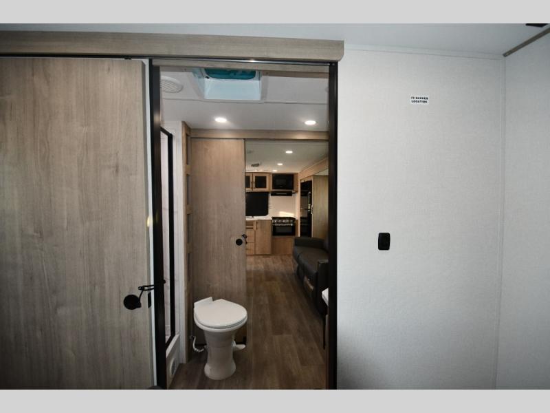 This model includes premium packages and upgrades designed to make every trip effortless, from the Construction & Convenience Package and Lifestyle Package to the Solar Prep, Elite Kitchen, and Power & Entertainment Packages. Theater seating replaces the sleeper sofa for maximum relaxation, and the 4-Season Protection Package ensures comfortable camping in any climate. Added peace of mind comes from SafeRide RV roadside assistance.