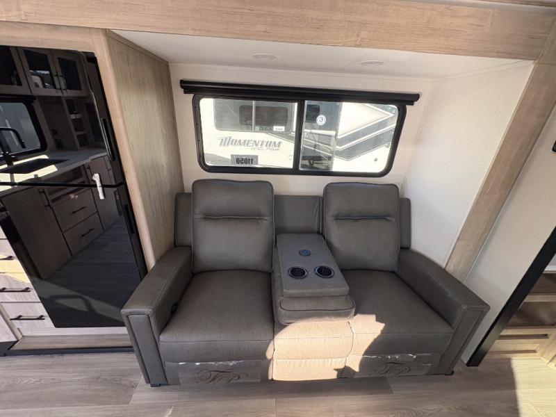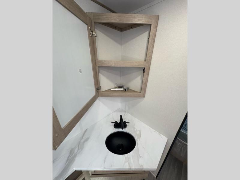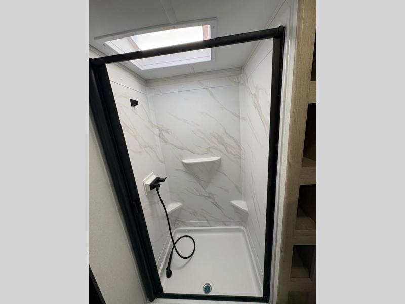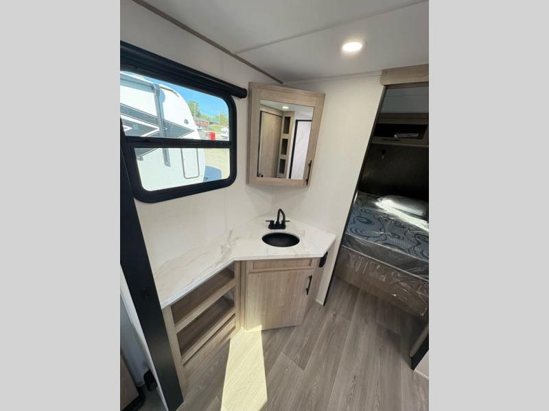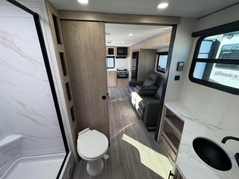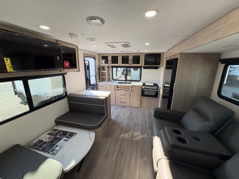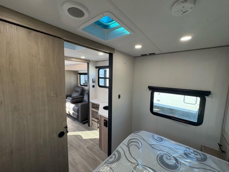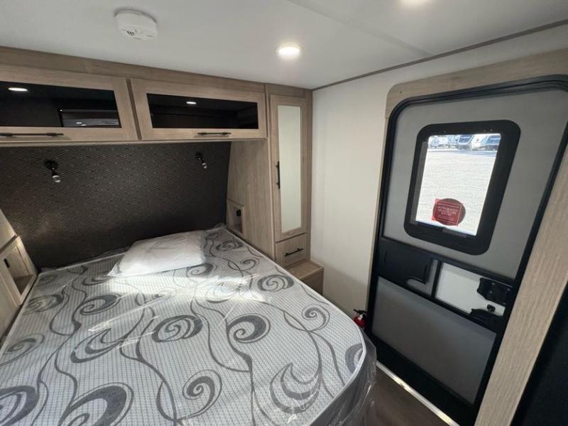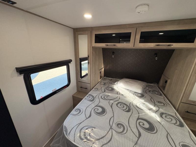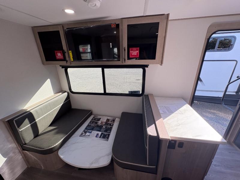 Treat yourself to a weekend of fun in this Imagine XLS travel trailer! Whether it's just you and your spouse, or you've chosen to bring along a group of friends, this trailer will meet the need. The front bedroom can sleep two people on the walk-around queen-size bed. The bedroom is quite functional because it not only contains the second exterior entry door, but it also has a private entrance into the walk-through bathroom since it is located on the other side of the bathroom. The booth dinette is functional too because it can transform from a dining location into a sleeping location, and the theater seating is directly across from the LED TV for easy viewing.