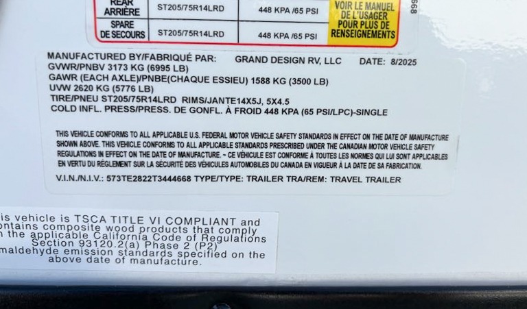 | Tire Size | ST205/75R14LRD |