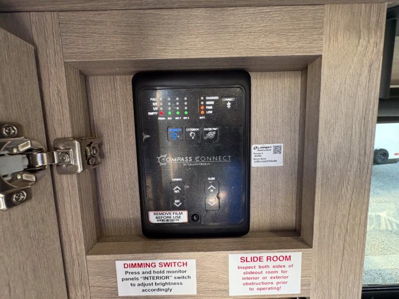 Let your imagination run wild with the possibilities that the Grand Design Imagine XLS travel trailer can provide! The Imagine XLS has been built with oversized tank capacities, an extra-large 2" fresh water drain valve, a ducted A/C system, a power tongue jack, and a heated and enclosed underbelly with suspended tanks. There is a designated heat duct to the subfloor and a residential ductless heating system throughout. For outdoor adventures, the electric awning with LED lights will enable you to stay protected, and the Tuff-Ply pass-thru flooring will withstand your many adventures. You will also love the XLS Solar Package that comes with a 200W roof mounted solar panel, a 40 Amp charge controller, a 12V 10 cu. ft. refrigerator, and roof mounted quick connect plugs!
