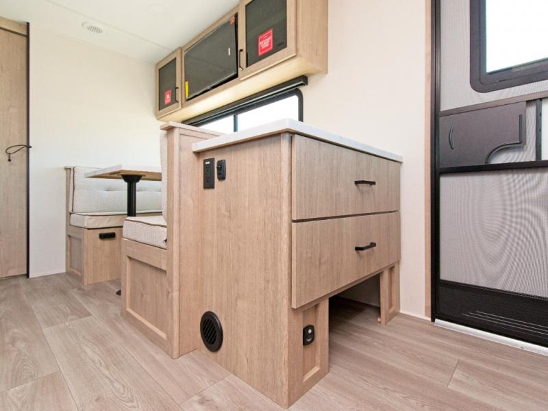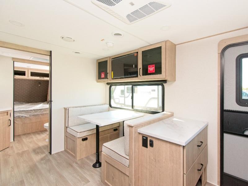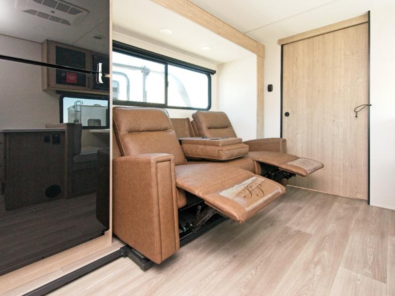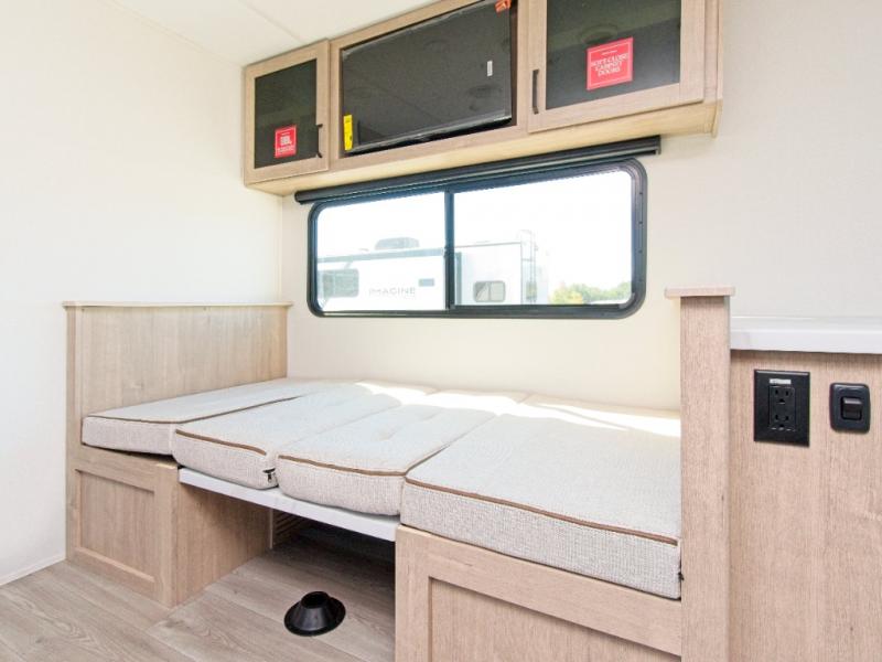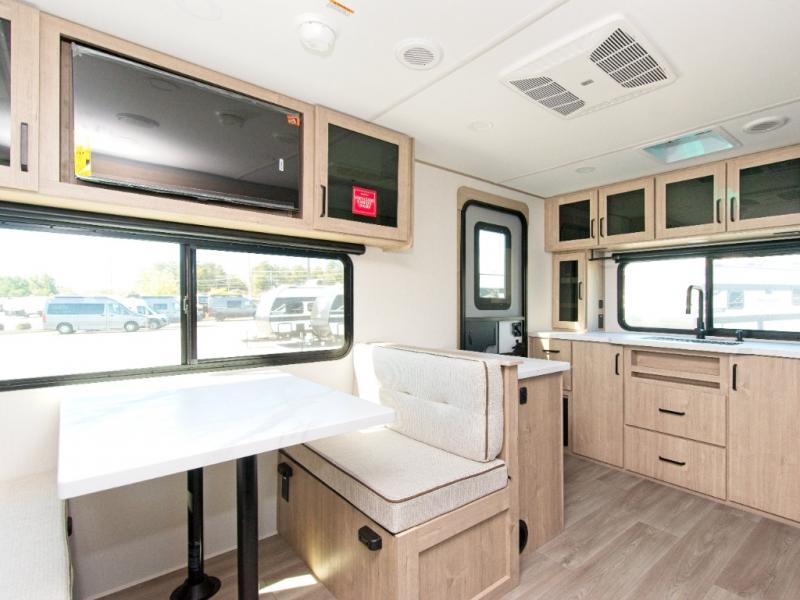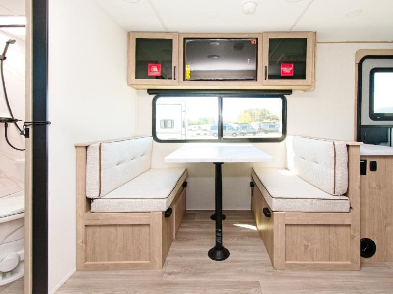 Enjoy meals at the convertible booth dinette, which also doubles as extra sleeping space. Relax in the theater seating directly across from the LED TV—perfect for movie nights after a day of adventure.