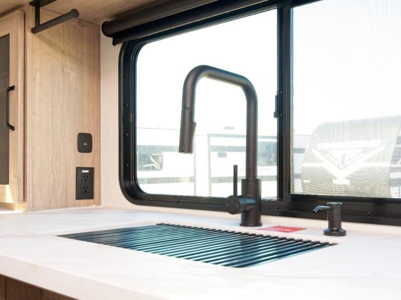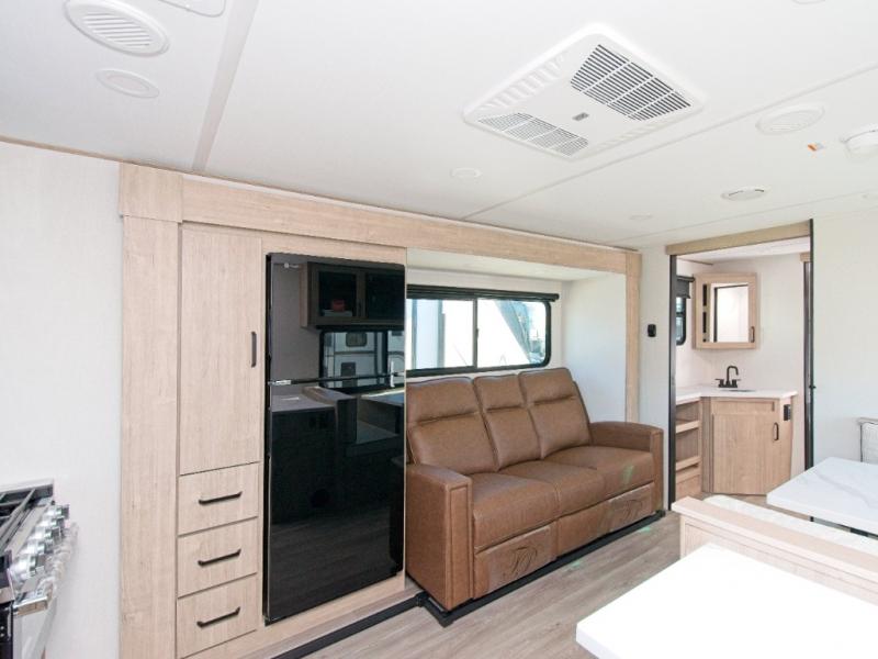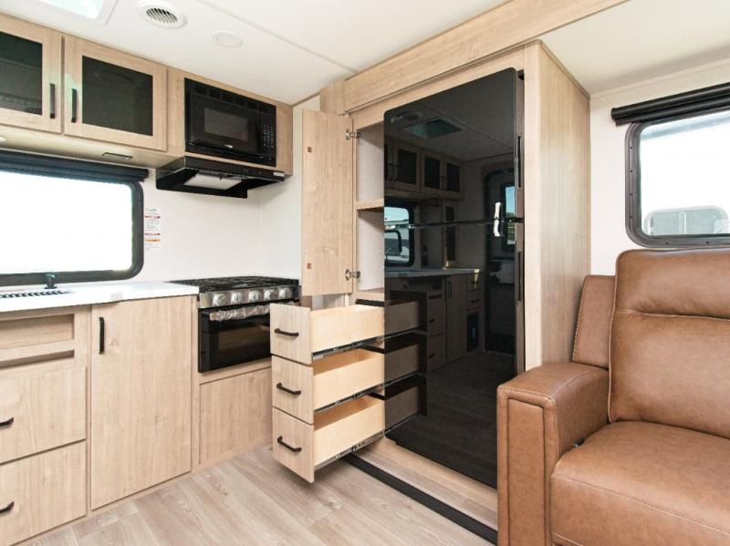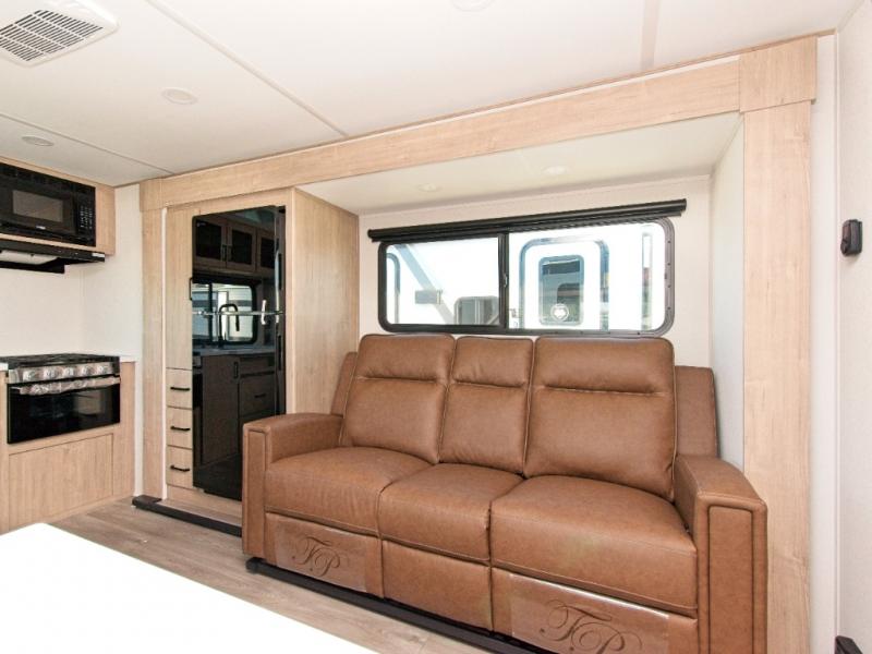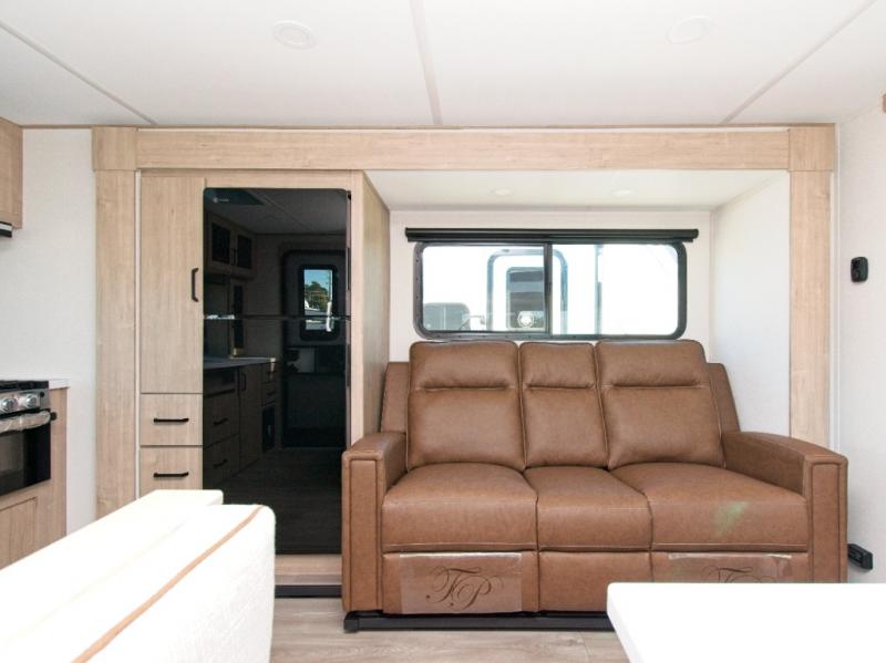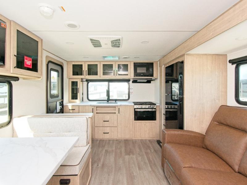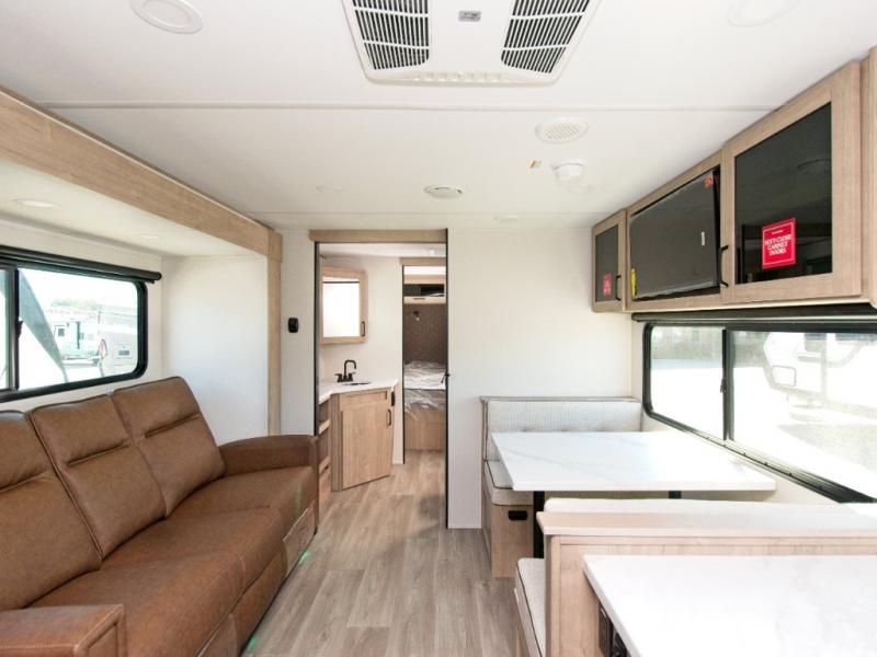 Enjoy meals at the convertible booth dinette, which also doubles as extra sleeping space. Relax in the theater seating directly across from the LED TV—perfect for movie nights after a day of adventure.
