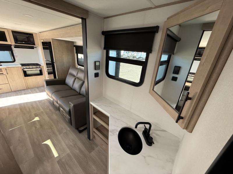 Let your imagination run wild with the possibilities that the Grand Design Imagine XLS travel trailer can provide! The Imagine XLS has been built with oversized tank capacities, an extra-large 2" fresh water drain valve, a ducted A/C system, a power tongue jack, and a heated and enclosed underbelly with suspended tanks. There is a designated heat duct to the subfloor and a residential ductless heating system throughout. For outdoor adventures, the electric awning with LED lights will enable you to stay protected, and the Tuff-Ply pass-thru flooring will withstand your many adventures. You will also love the XLS Solar Package that comes with a 200W roof mounted solar panel, a 40 Amp charge controller, a 12V 10 cu. ft. refrigerator, and roof mounted quick connect plugs!