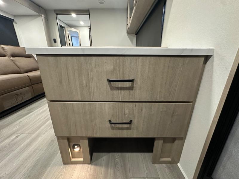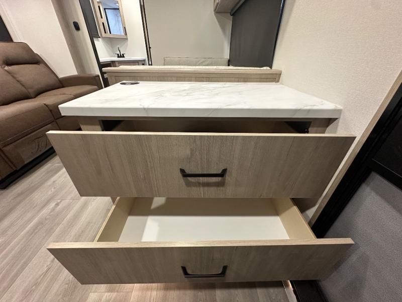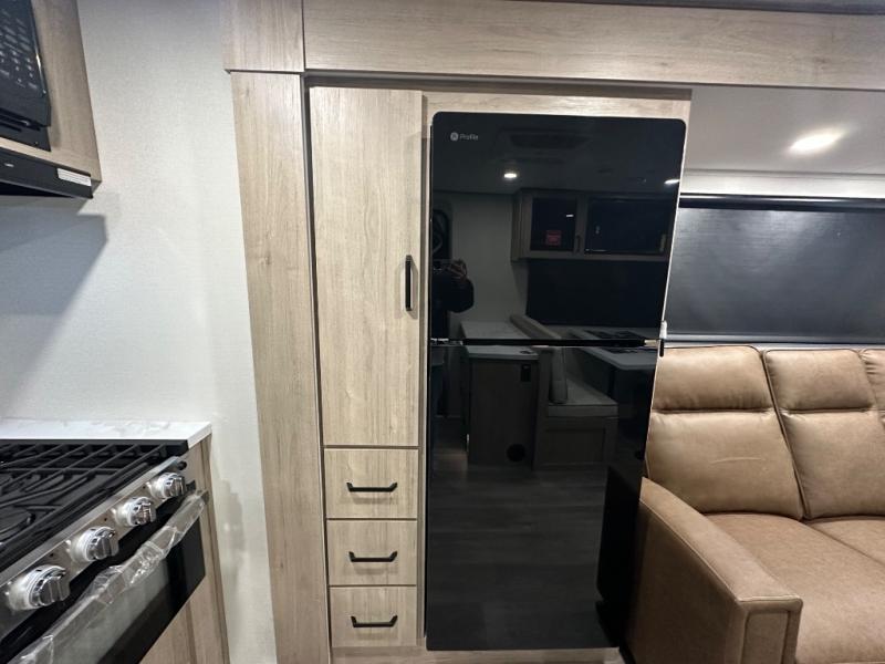 Let your imagination run wild with the possibilities that the Grand Design Imagine XLS travel trailer can provide! The Imagine XLS has been built with oversized tank capacities, an extra-large 2" fresh water drain valve, a ducted A/C system, a power tongue jack, and a heated and enclosed underbelly with suspended tanks. There is a designated heat duct to the subfloor and a residential ductless heating system throughout. For outdoor adventures, the electric awning with LED lights will enable you to stay protected, and the Tuff-Ply pass-thru flooring will withstand your adventures. You will also love the XLS Solar Package that comes with a 200W roof mounted solar panel, a 30 Amp charge controller, a 12V 10 cu. ft. refrigerator, and roof mounted quick connect plugs!