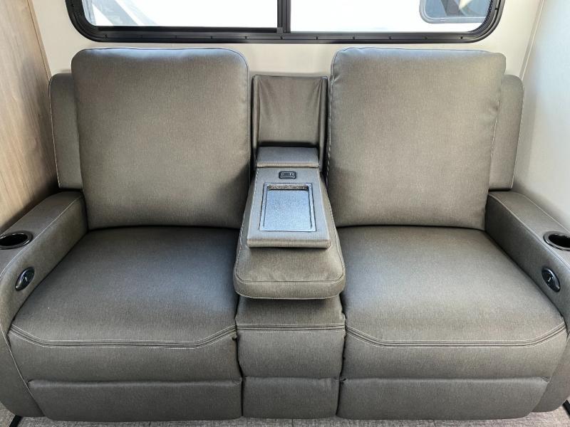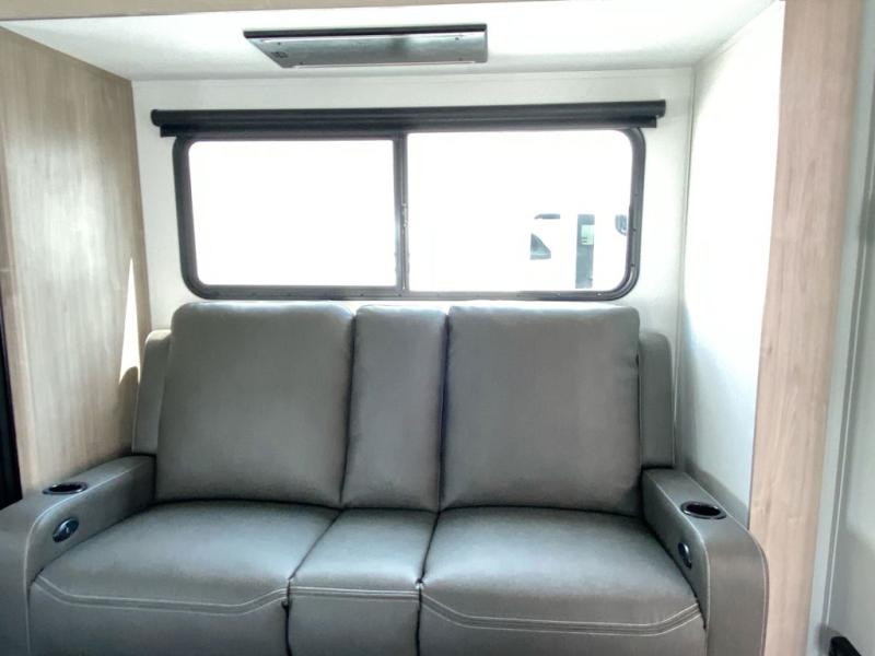 Step inside and be greeted by a welcoming, light-filled interior that feels bigger than its footprint. Large panoramic windows bring the outdoors in, creating a comfortable environment for relaxing, entertaining, or enjoying meals together. The convertible dinette and comfortable sofa provide flexible seating options, perfect for family hangouts, game nights, or planning tomorrow’s adventure.