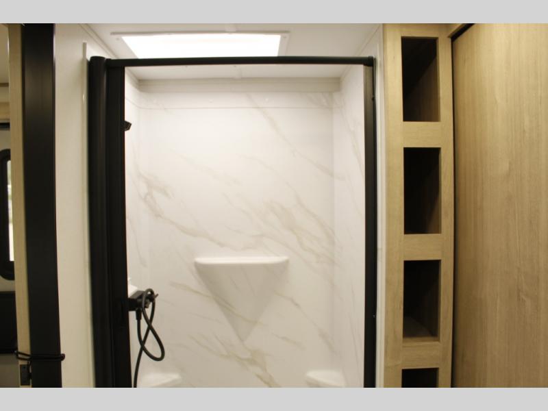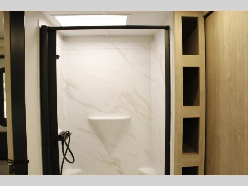 Let your imagination run wild with the possibilities that the Grand Design Imagine XLS travel trailer can provide! The Imagine XLS has been built with oversized tank capacities, an extra-large 2" fresh water drain valve, a ducted A/C system, a power tongue jack, and a heated and enclosed underbelly with suspended tanks. There is a designated heat duct to the subfloor and a residential ductless heating system throughout. For outdoor adventures, the electric awning with LED lights will enable you to stay protected, and the Tuff-Ply pass-thru flooring will withstand your adventures. You will also love the XLS Solar Package that comes with a 200W roof mounted solar panel, a 30 Amp charge controller, a 12V 10 cu. ft. refrigerator, and roof mounted quick connect plugs!
