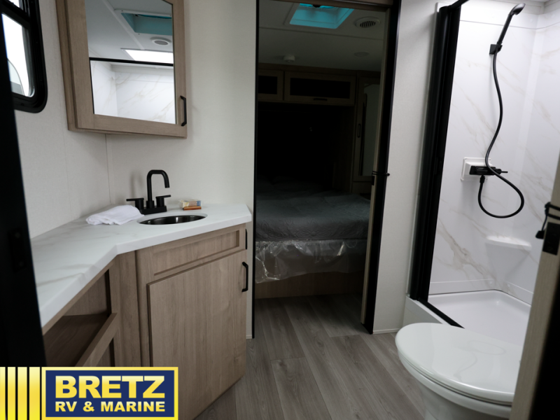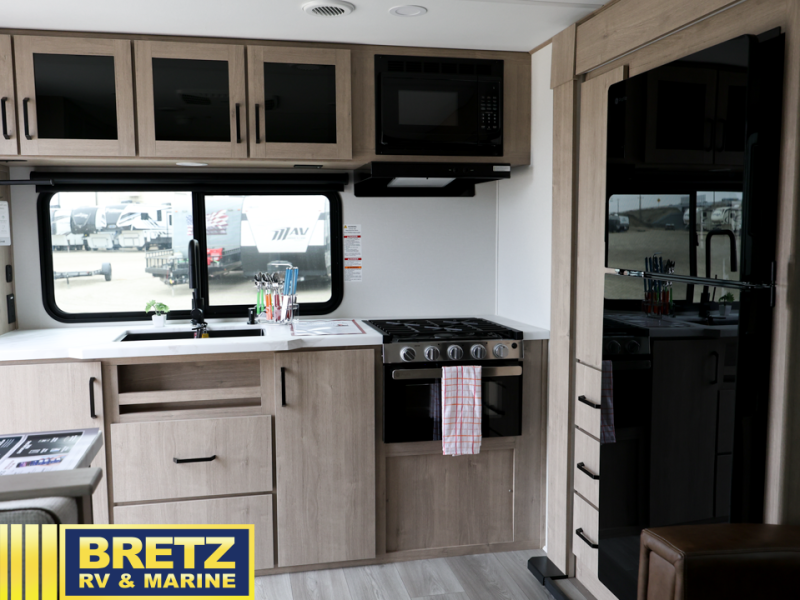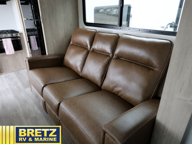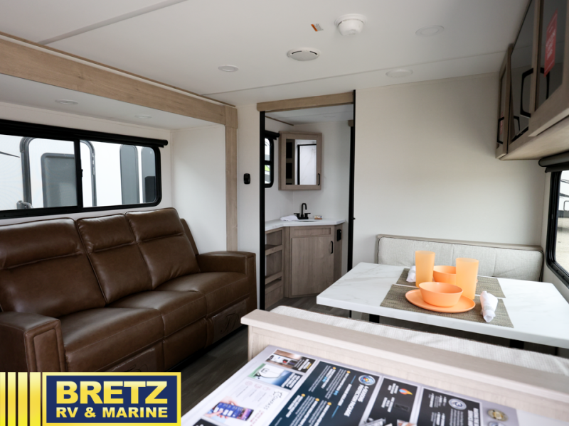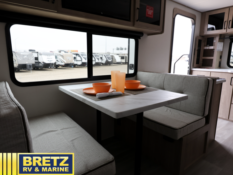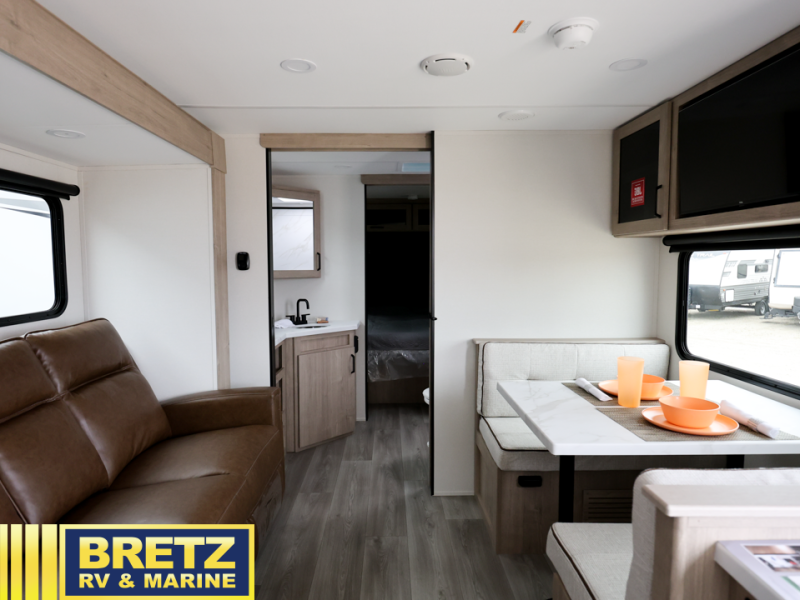 Treat yourself to a weekend of fun in this Imagine XLS travel trailer! Whether it's just you and your spouse, or you've chosen to bring along a group of friends, this trailer will meet your needs. The front bedroom can sleep two people on the walk-around queen-size bed. The bedroom is quite functional because it not only contains the second exterior entry door, but it also has a private entrance into the walk-through bathroom since it is located on the other side of the bathroom. The booth dinette is functional too because it can transform from a dining location into a sleeping location, and the theater seating is directly across from the LED TV for easy viewing. The rear kitchen is fit for the chef on the trip, it features residential countertops, a stainless-steel sink and a 3-burner range with oven for you to cook your meals in comfort.