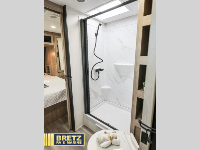 Let your imagination run wild with the possibilities that the Grand Design Imagine XLS travel trailer can provide! The Imagine XLS has been built with oversized tank capacities, an extra-large 2" fresh water drain valve, a ducted A/C system, a power tongue jack, and a heated and enclosed underbelly with suspended tanks. There is a designated heat duct to the subfloor and a residential ductless heating system throughout. For outdoor adventures, the electric awning with LED lights will enable you to stay protected, and the Tuff-Ply pass-thru flooring will withstand your adventures. You will also love the XLS Solar Package that comes with a 200W roof mounted solar panel, a 30 Amp charge controller, a 12V 10 cu. ft. refrigerator, and roof mounted quick connect plugs!