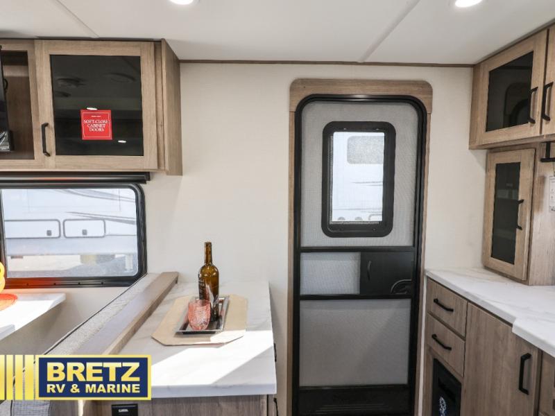Treat yourself to a weekend of fun in this Imagine XLS travel trailer! Whether it's just you and your spouse, or you've chosen to bring along a group of friends, this trailer will meet your needs. The front bedroom can sleep two people on the walk-around queen-size bed. The bedroom is quite functional because it not only contains the second exterior entry door, but it also has a private entrance into the walk-through bathroom since it is located on the other side of the bathroom. The booth dinette is functional too because it can transform from a dining location into a sleeping location, and the theater seating is directly across from the LED TV for easy viewing. The rear kitchen is fit for the chef on the trip, it features residential countertops, a stainless-steel sink and a 3-burner range with oven for you to cook your meals in comfort.