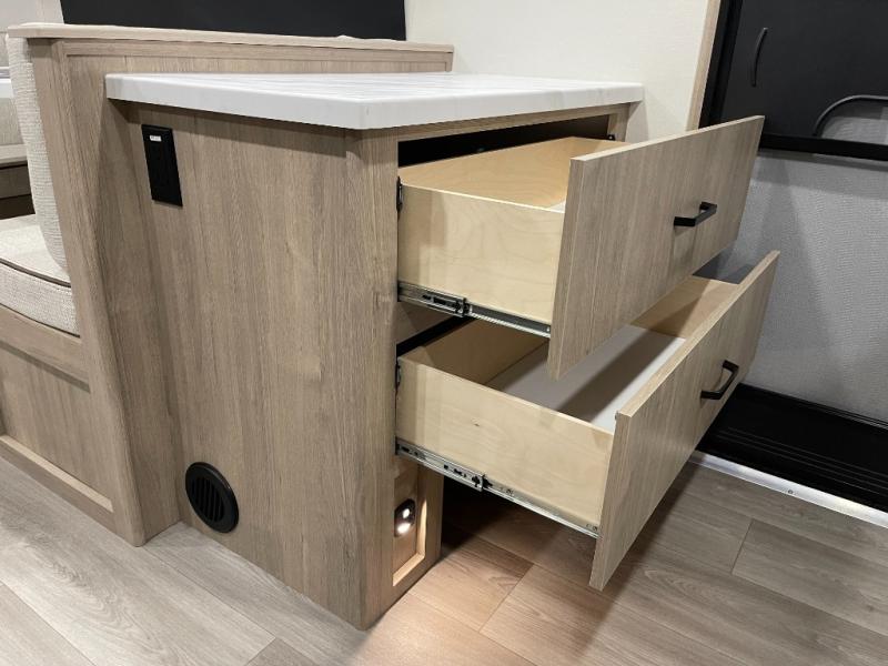 Let your imagination run wild with the possibilities that the Grand Design Imagine XLS travel trailer can provide! The Imagine XLS has been built with oversized tank capacities, an extra-large 2" fresh water drain valve, a ducted A/C system, a power tongue jack, and a heated and enclosed underbelly with suspended tanks. There is a designated heat duct to the subfloor and a residential ductless heating system throughout. For outdoor adventures, the electric awning with LED lights will enable you to stay protected, and the Tuff-Ply pass-thru flooring will withstand your adventures. You will also love the XLS Solar Package that comes with a 200W roof mounted solar panel, a 30 Amp charge controller, a 12V 10 cu. ft. refrigerator, and roof mounted quick connect plugs!