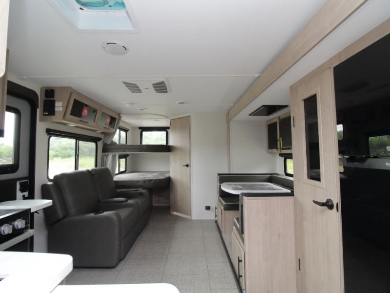 Spacious and thoughtfully laid out, the Imagine XLS 25DBE offers a family-friendly floorplan designed for memory-making. The double-size rear bunks include privacy curtains and under-bunk storage—perfect for kids or guests. The private front bedroom features a walk-around queen bed, overhead cabinets, and its own exterior entry door for added convenience.