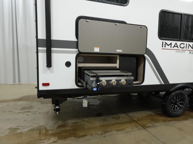 Let your imagination run wild with the possibilities that the Grand Design Imagine XLS travel trailer can provide! The Imagine XLS has been built with oversized tank capacities, an extra-large 2" fresh water drain valve, a ducted A/C system, a power tongue jack, and a heated and enclosed underbelly with suspended tanks. There is a designated heat duct to the subfloor and a residential ductless heating system throughout. For outdoor adventures, the electric awning with LED lights will enable you to stay protected, and the Tuff-Ply pass-thru flooring will withstand your many adventures. You will also love the XLS Solar Package that comes with a 200W roof mounted solar panel, a 40 Amp charge controller, a 12V 10 cu. ft. refrigerator, and roof mounted quick connect plugs!