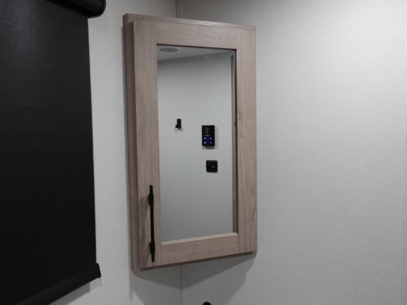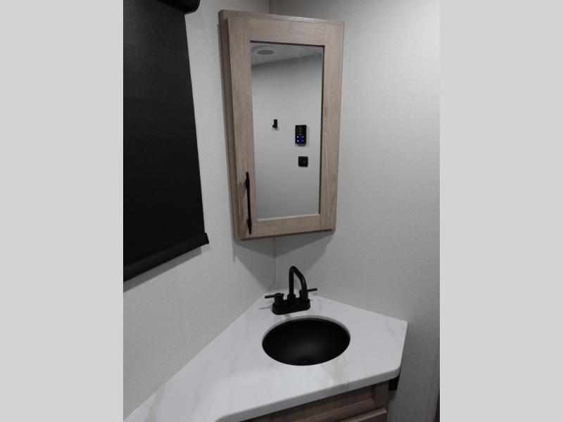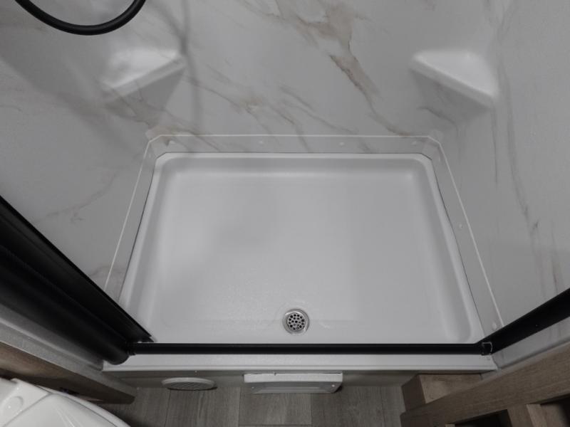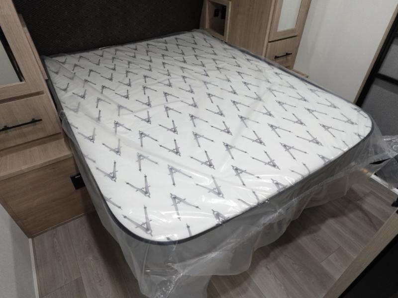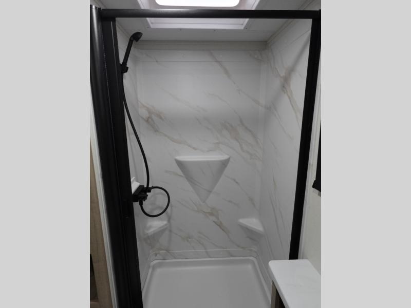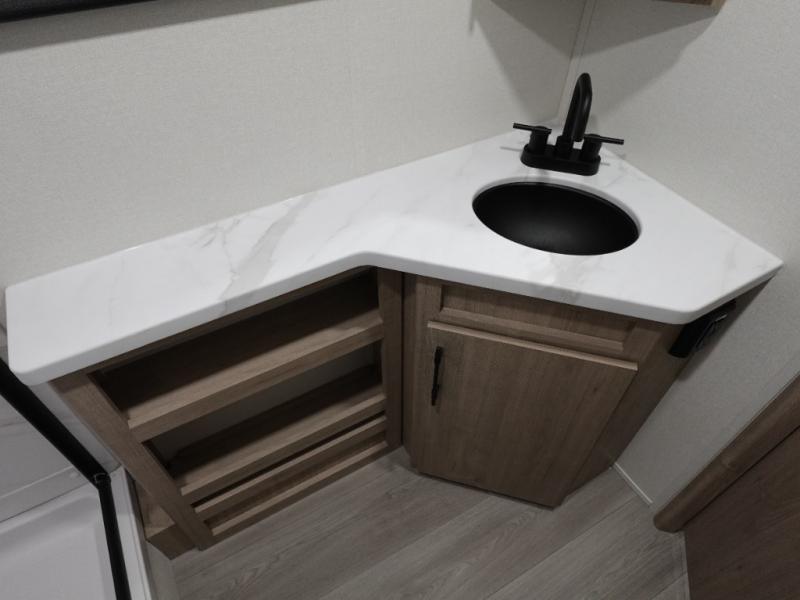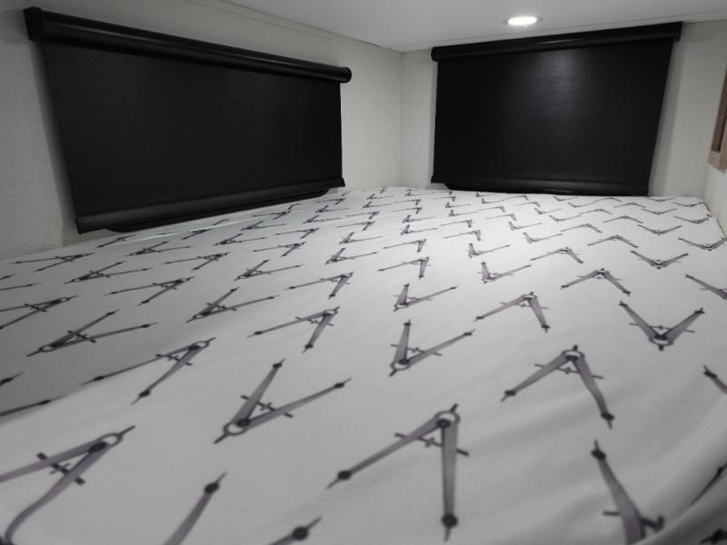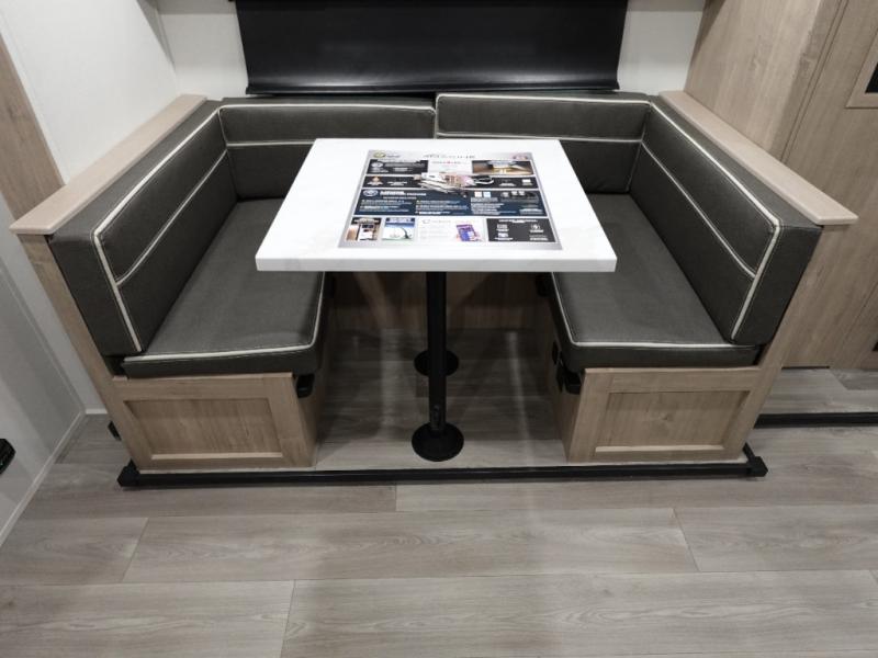 The dual entry doors make it easy to enter and exit this travel trailer! You will find a walk-around queen-size bed up front in the private bedroom, and one of the entry/exit doors to the unit so you can quietly slip out for an early morning fishing trip. The U-shaped dinette is right next to the window, so you can look out at your surroundings while you enjoy breakfast. The double-size bunks have some privacy curtains, and the bunks are right next to the full bathroom for easy access in the middle of the night. The fully equipped kitchen has everything you need to get dinner in the oven, and you can have some more prep space by using the flip-up countertop extension. You even have an outdoor griddle and an outdoor 1.6 cu. ft. refrigerator to enjoy a cold beverage while you cook under the 22' electric awning!