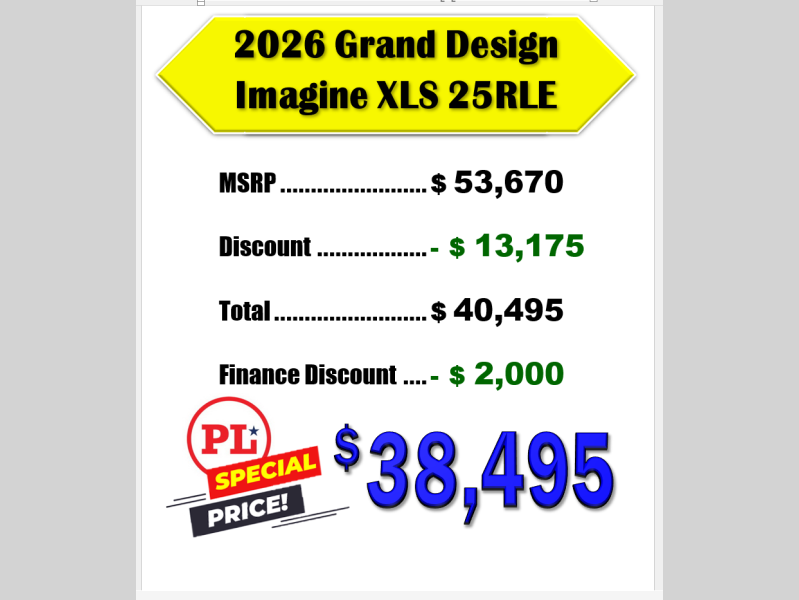 New 2026 Grand Design Imagine XLS 25RLE Travel Trailer