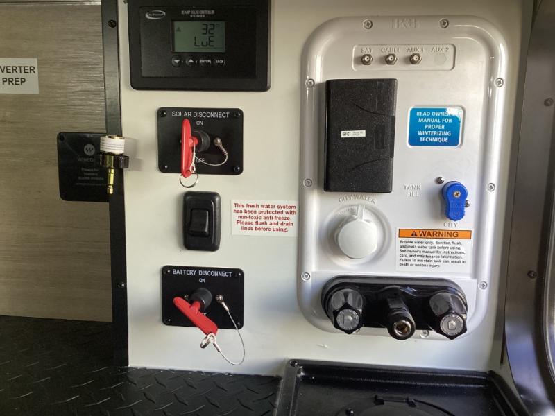 Power tongue jack, and a heated and enclosed underbelly with suspended tanks.