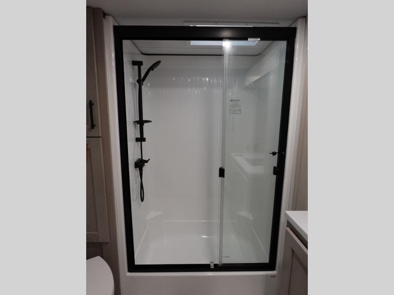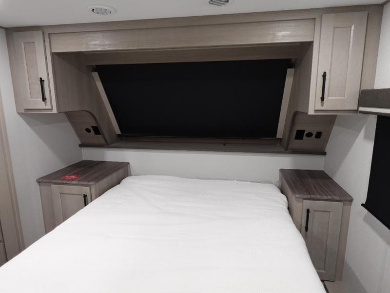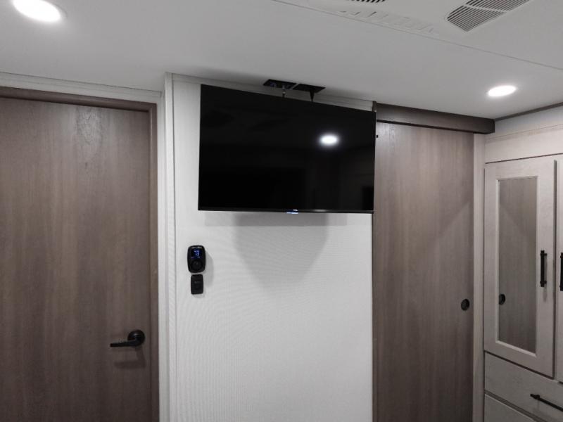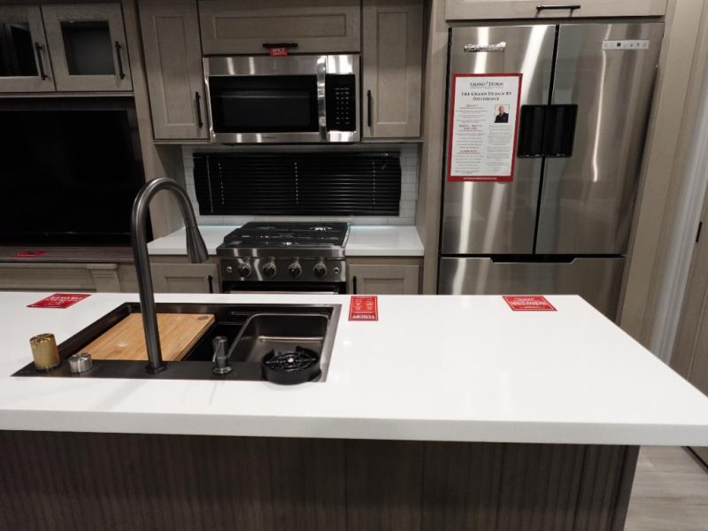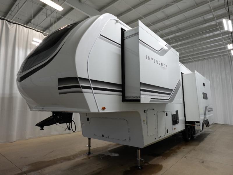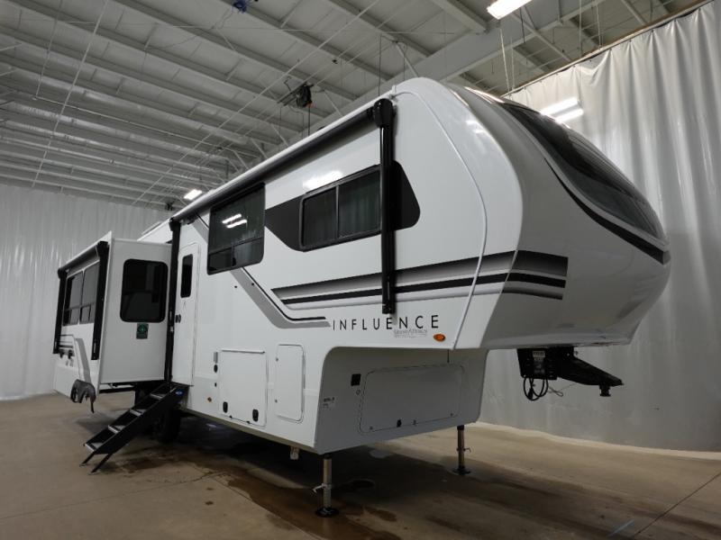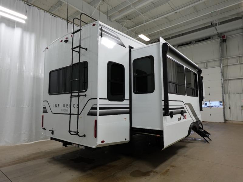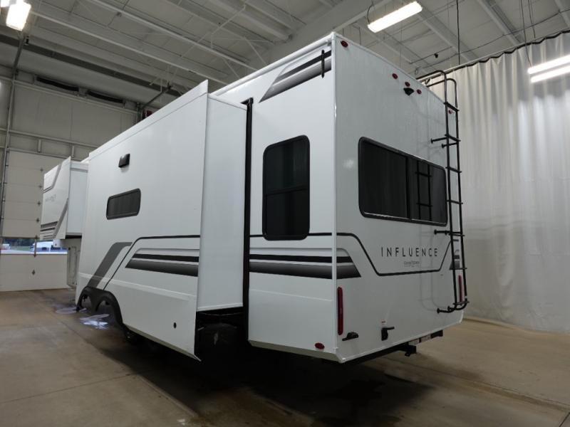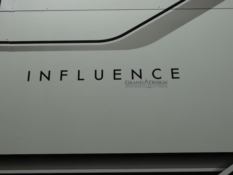 Any Grand Design Influence fifth wheel features five-sided aluminum cage construction with a walk-on roof and a fully enclosed underbelly with heated tanks and storage for all weather camping. For peace of mind, the MORryde CRE3000 Suspension system will provide safe and smooth towing, and the 101" widebody construction offers all the room you need and that is before multiple slides are fully engaged. You will appreciate the Keyed-Alike locks, slam-latch baggage doors with magnetic door catches, exterior security light, and SolidStep entry steps. On the inside, Congoleum flooring, premium roller shades for privacy, a hallway handrail for safety, and nightstands with USB ports to keep all of your electronics fully charged. You will also love the on demand tankless water heater when showering, plus the added heat and ambiance from an electric fireplace, and so much more!
