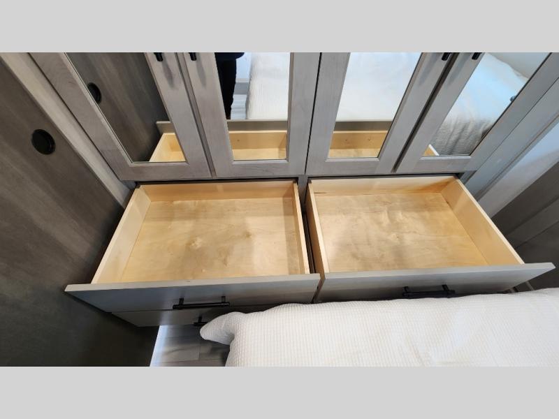 Includes a 101” wide-body frame, Goodyear tires, MORryde CRE3000 suspension, and a fully laminated fiberglass exterior—engineered for durability and smooth towing.