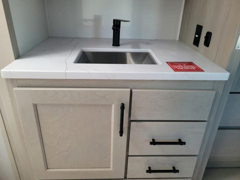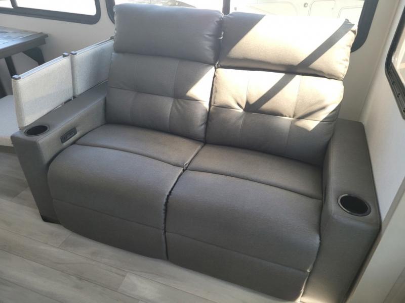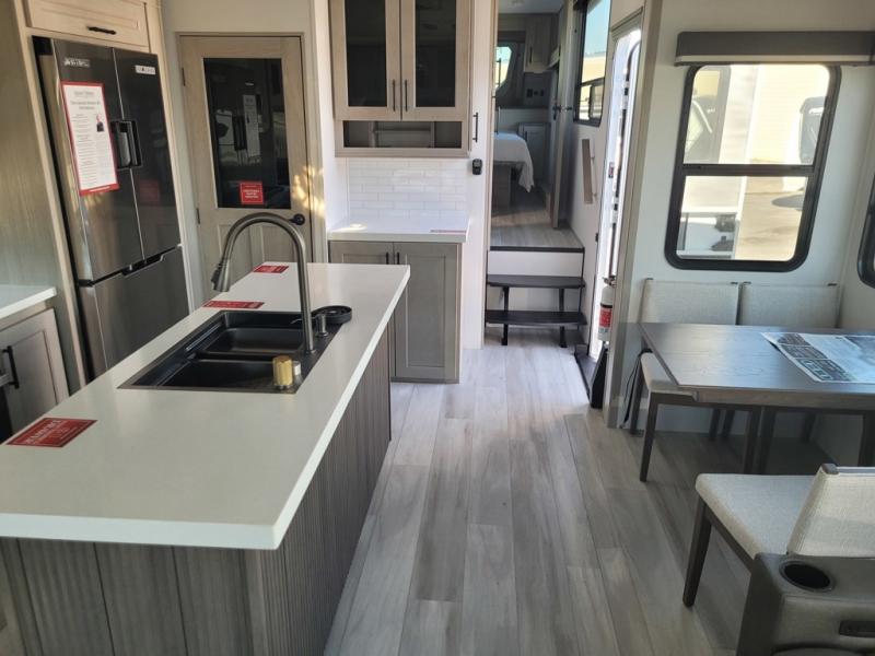 Any Grand Design Influence fifth wheel features five-sided aluminum cage construction with a walk-on roof and a fully enclosed underbelly with heated tanks and storage for all weather camping. For peace of mind, the MORryde CRE3000 Suspension system will provide safe and smooth towing, and the 101" widebody construction offers all the room you need and that is before multiple slides are fully engaged. You will appreciate the Keyed-Alike locks, slam-latch baggage doors with magnetic door catches, exterior security light, and SolidStep entry steps. On the inside, Congoleum flooring, premium roller shades for privacy, a hallway handrail for safety, and nightstands with USB ports to keep all of your electronics fully charged. You will also love the on demand tankless water heater when showering, plus the added heat and ambiance from an electric fireplace, and so much more!