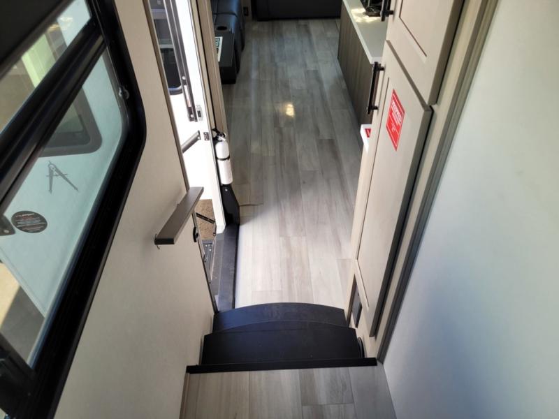 Any Grand Design Influence fifth wheel features five-sided aluminum cage construction with a walk-on roof and a fully enclosed underbelly with heated tanks and storage for all weather camping. For peace of mind, the MORryde CRE3000 Suspension system will provide safe and smooth towing, and the 101" widebody construction offers all the room you need and that is before multiple slides are fully engaged. You will appreciate the Keyed-Alike locks, slam-latch baggage doors with magnetic door catches, exterior security light, and SolidStep entry steps. On the inside, Congoleum flooring, premium roller shades for privacy, a hallway handrail for safety, and nightstands with USB ports to keep all of your electronics fully charged. You will also love the on demand tankless water heater when showering, plus the added heat and ambiance from an electric fireplace, and so much more!