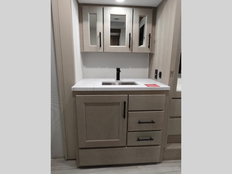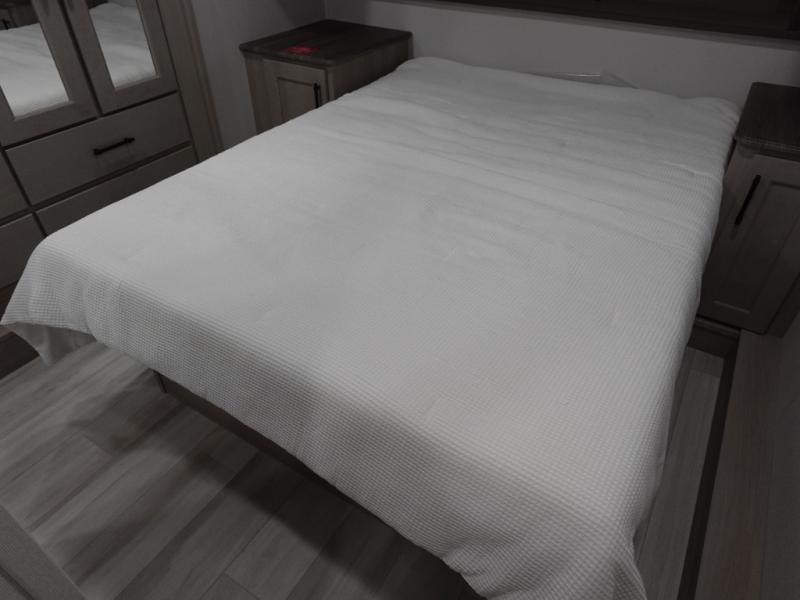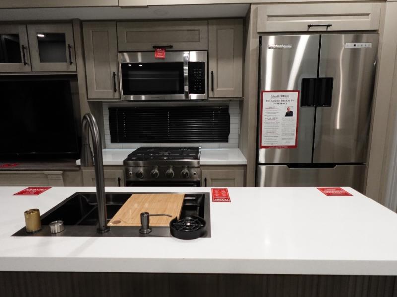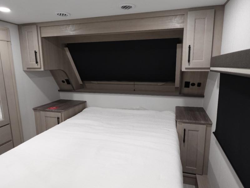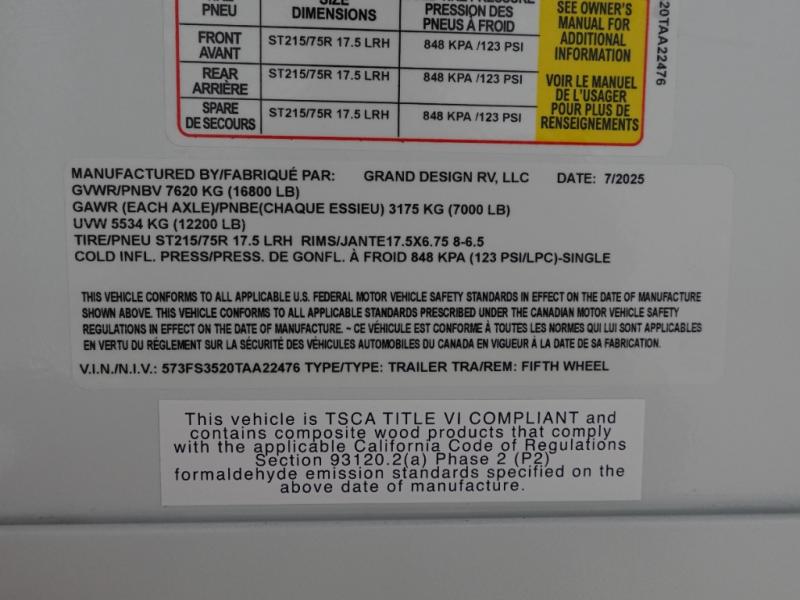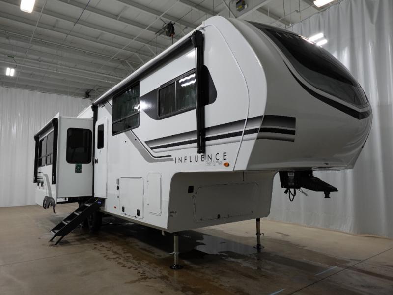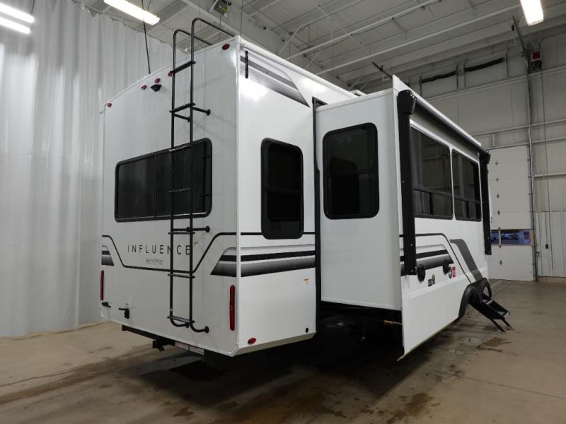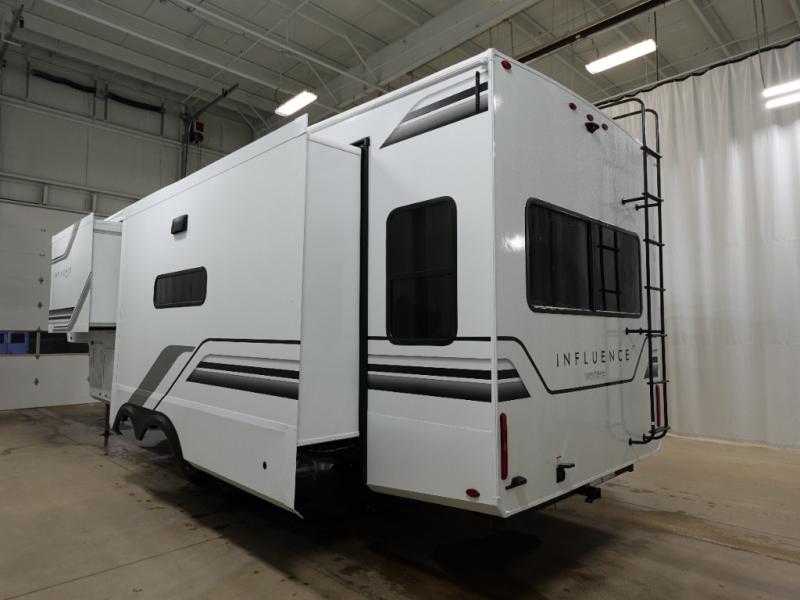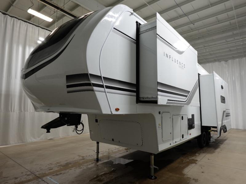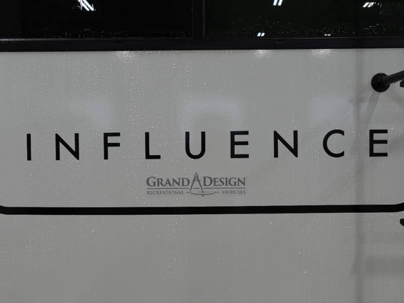 Any Grand Design Influence fifth wheel features five-sided aluminum cage construction with a walk-on roof and a fully enclosed underbelly with heated tanks and storage for all weather camping. For peace of mind, the MORryde CRE3000 Suspension system will provide safe and smooth towing, and the 101" widebody construction offers all the room you need and that is before multiple slides are fully engaged. You will appreciate the Keyed-Alike locks, slam-latch baggage doors with magnetic door catches, exterior security light, and SolidStep entry steps. On the inside, Congoleum flooring, premium roller shades for privacy, a hallway handrail for safety, and nightstands with USB ports to keep all of your electronics fully charged. You will also love the on demand tankless water heater when showering, plus the added heat and ambiance from an electric fireplace, and so much more!
