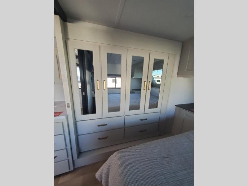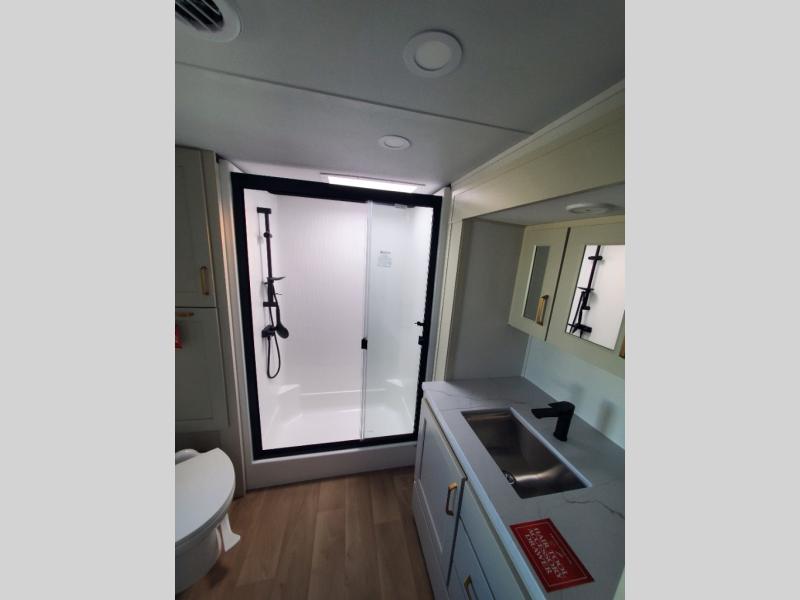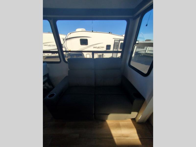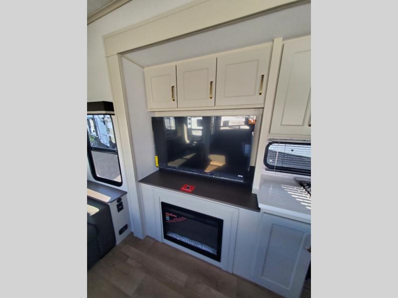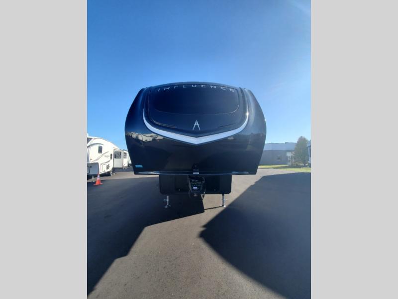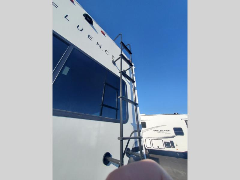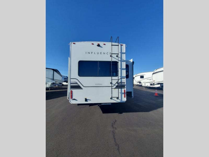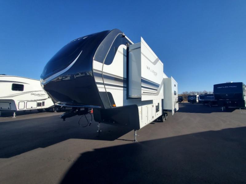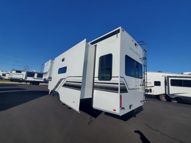 Any Grand Design Influence fifth wheel features five-sided aluminum cage construction with a walk-on roof and a fully enclosed underbelly with heated tanks and storage for all weather camping. For peace of mind, the MORryde CRE3000 Suspension system will provide safe and smooth towing, and the 101" widebody construction offers all the room you need and that is before multiple slides are fully engaged. You will appreciate the Keyed-Alike locks, slam-latch baggage doors with magnetic door catches, exterior security light, and SolidStep entry steps. On the inside, Congoleum flooring, premium roller shades for privacy, a hallway handrail for safety, and nightstands with USB ports to keep all of your electronics fully charged. You will also love the on demand tankless water heater when showering, plus the added heat and ambiance from an electric fireplace, and so much more!