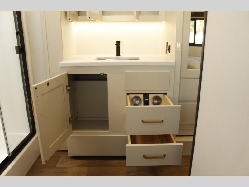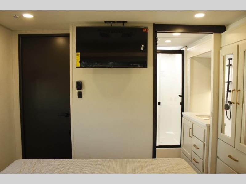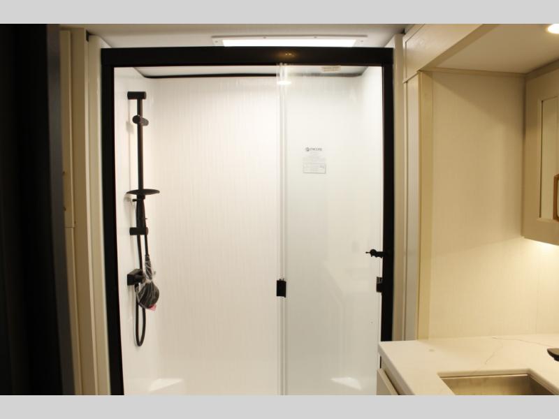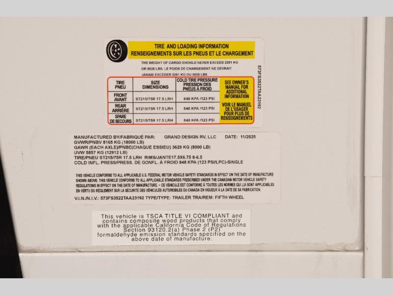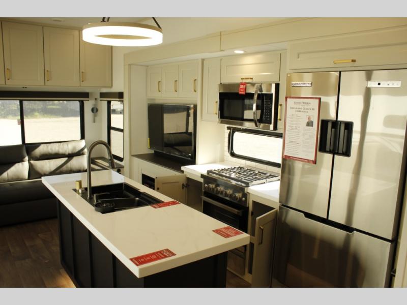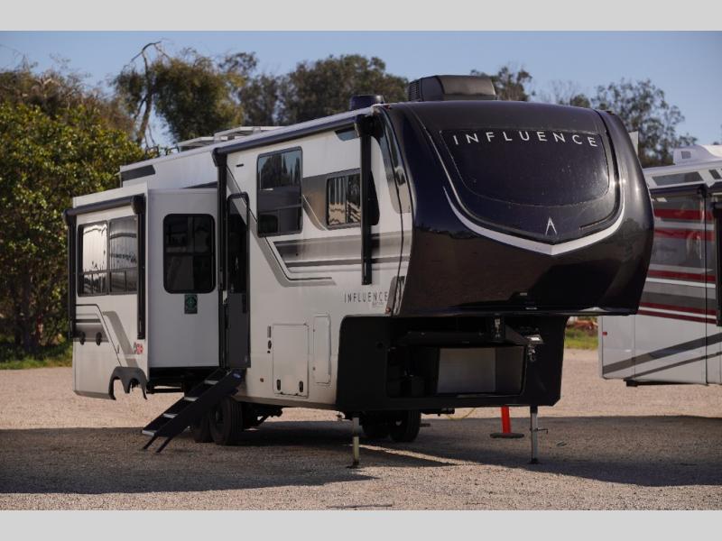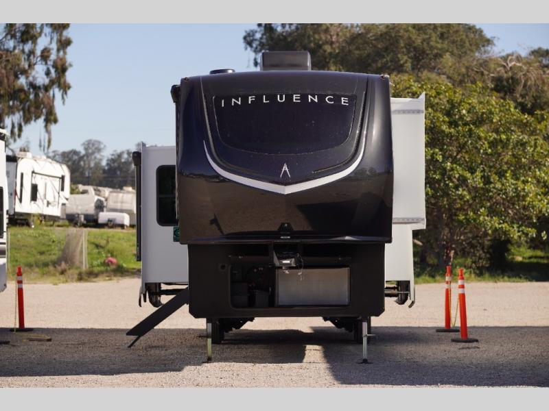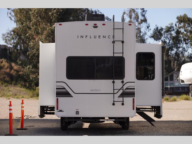 Any Grand Design Influence fifth wheel features five-sided aluminum cage construction with a walk-on roof and a fully enclosed underbelly with heated tanks and storage for all weather camping. For peace of mind, the MORryde CRE3000 Suspension system will provide safe and smooth towing, and the 101" widebody construction offers all the room you need and that is before multiple slides are fully engaged. You will appreciate the Keyed-Alike locks, slam-latch baggage doors with magnetic door catches, exterior security light, and SolidStep entry steps. On the inside, Congoleum flooring, premium roller shades for privacy, a hallway handrail for safety, and nightstands with USB ports to keep all of your electronics fully charged. You will also love the on demand tankless water heater when showering, plus the added heat and ambiance from an electric fireplace, and so much more!