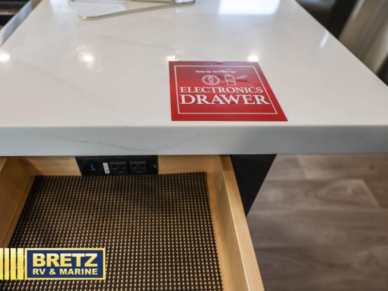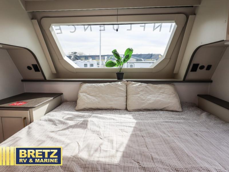 Any Grand Design Influence fifth wheel features five-sided aluminum cage construction with a walk-on roof and a fully enclosed underbelly with heated tanks and storage for all weather camping. For peace of mind, the MORryde CRE3000 Suspension system will provide safe and smooth towing, and the 101" widebody construction offers all the room you need and that is before multiple slides are fully engaged. You will appreciate the Keyed-Alike locks, slam-latch baggage doors with magnetic door catches, exterior security light, and SolidStep entry steps. On the inside, Congoleum flooring, premium roller shades for privacy, a hallway handrail for safety, and nightstands with USB ports to keep all of your electronics fully charged. You will also love the on demand tankless water heater when showering, plus the added heat and ambiance from an electric fireplace, and so much more!