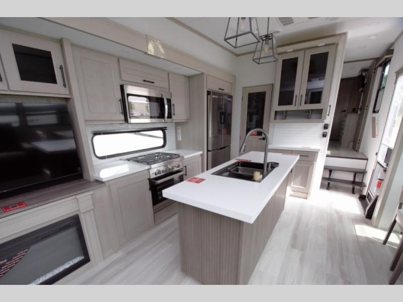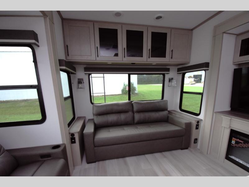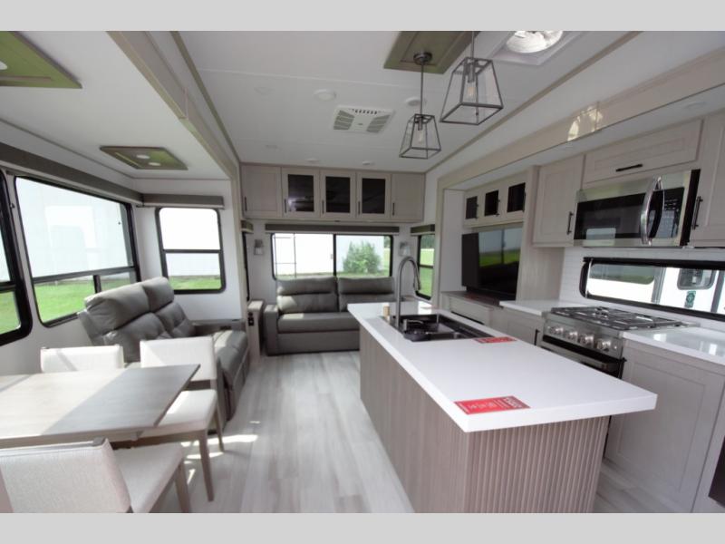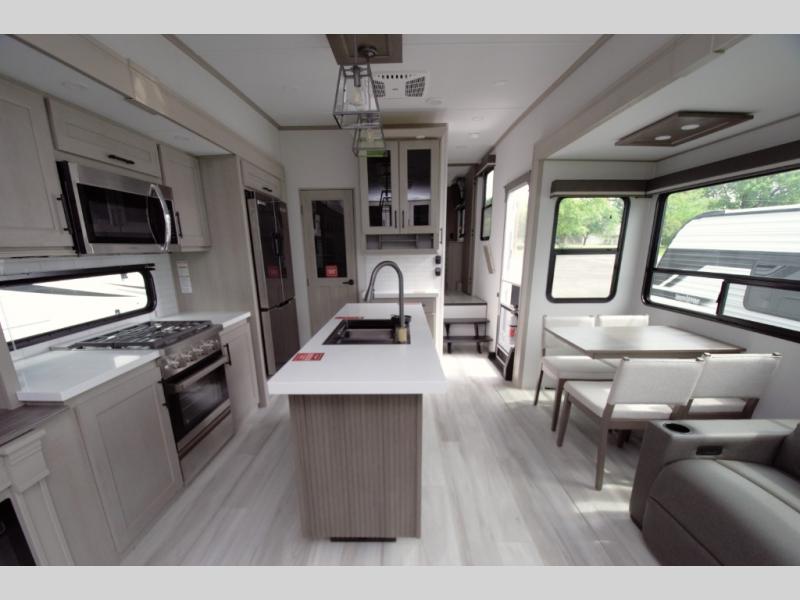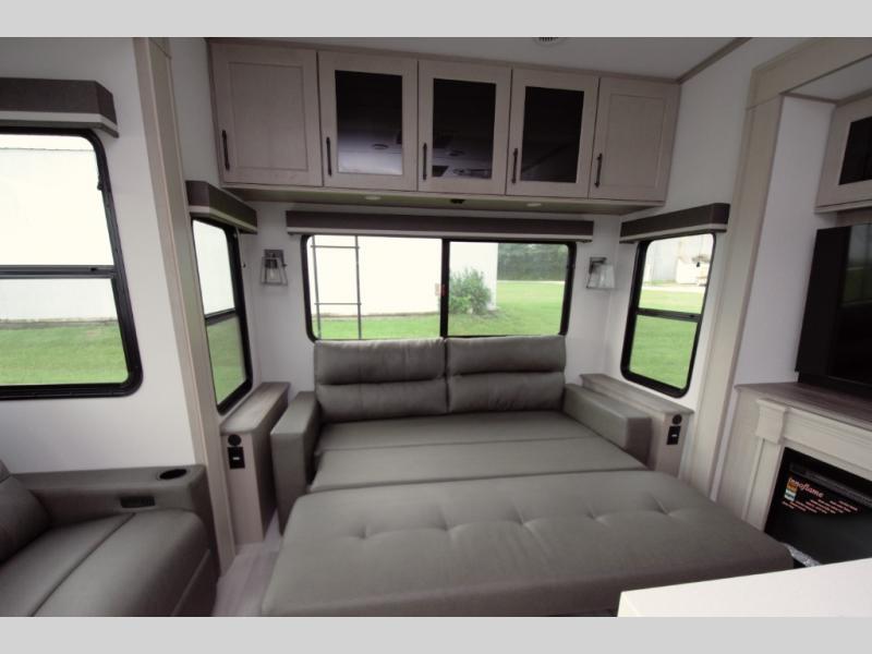 Enjoy residential style luxury in the Grand Design Influence 3003RL fifth wheel. With triple slide outs, a wide body design, and premium features throughout, this RV is perfect for extended stays or full time travel.