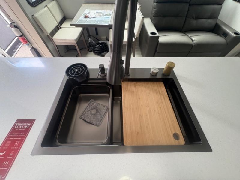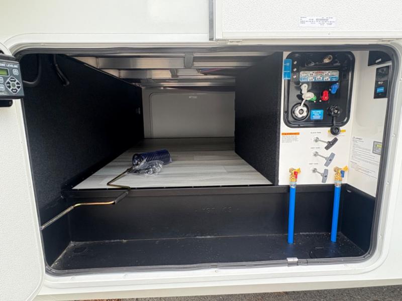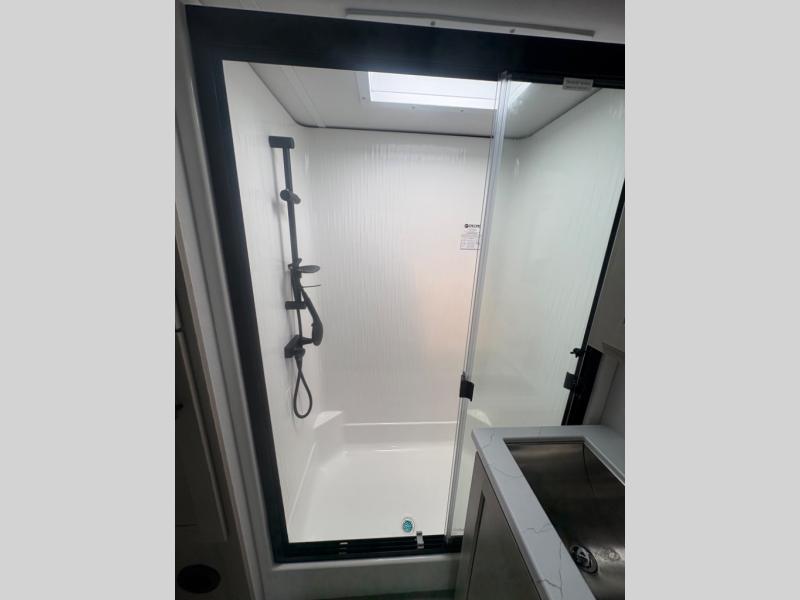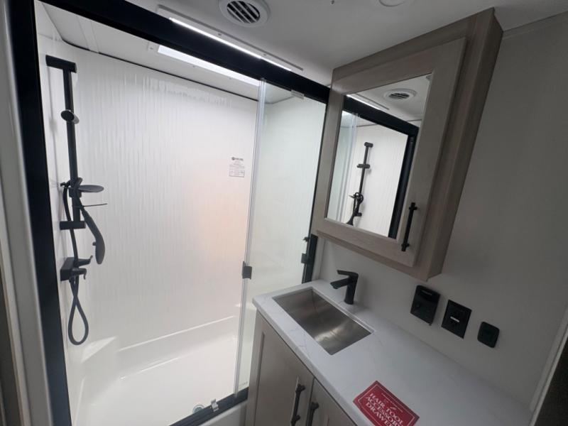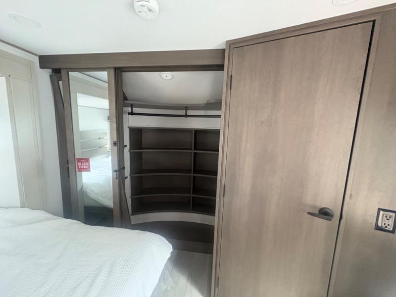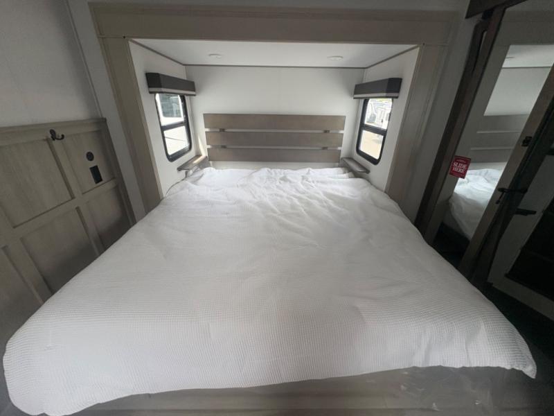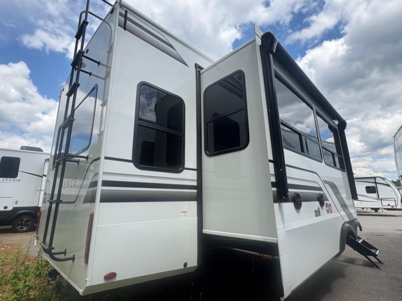 Any Grand Design Influence fifth wheel features five-sided aluminum cage construction with a walk-on roof and a fully enclosed underbelly with heated tanks and storage for all weather camping. For peace of mind, the MORryde CRE3000 Suspension system will provide safe and smooth towing, and the 101" widebody construction offers all the room you need and that is before multiple slides are fully engaged. You will appreciate the Keyed-Alike locks, slam-latch baggage doors with magnetic door catches, exterior security light, and SolidStep entry steps. On the inside, Congoleum flooring, premium roller shades for privacy, a hallway handrail for safety, and nightstands with USB ports to keep all of your electronics fully charged. You will also love the On Demand tankless water heater when showering, plus the added heat and ambiance from an electric fireplace, and so much more!