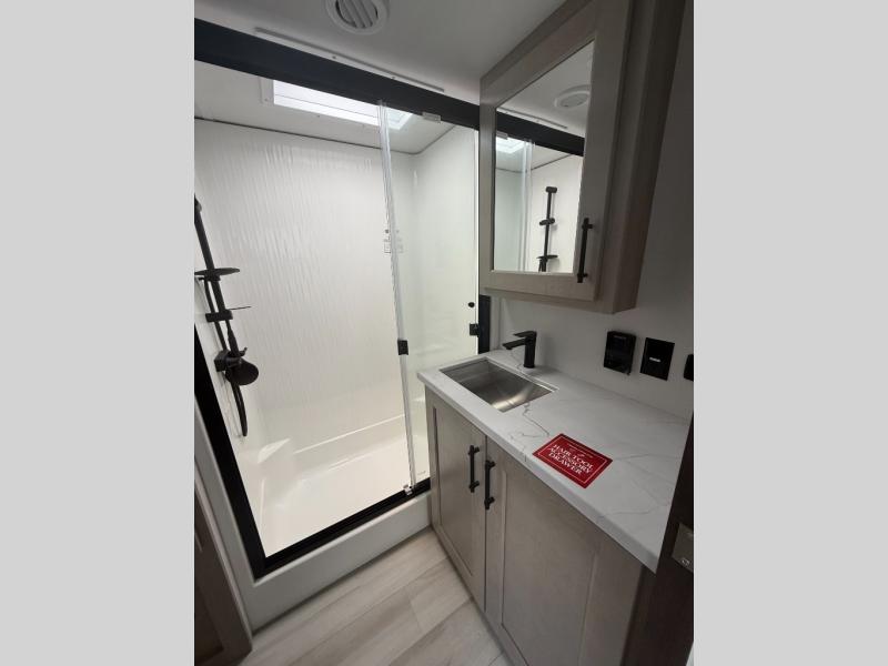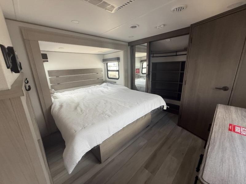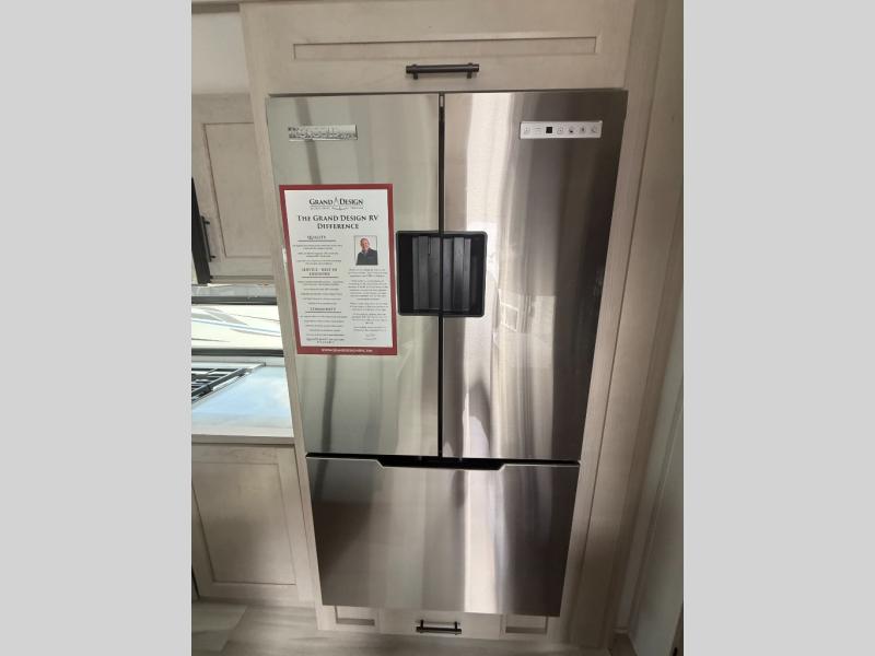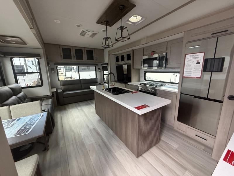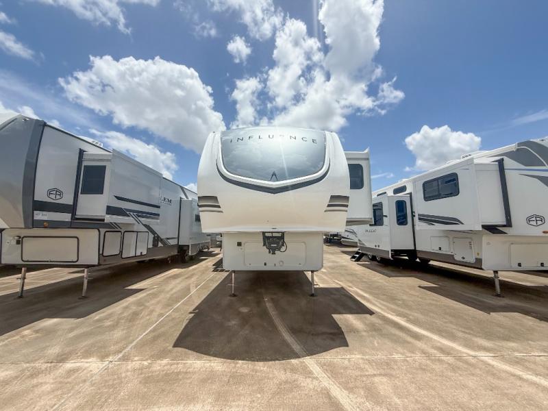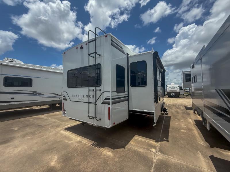 Any Grand Design Influence fifth wheel features five-sided aluminum cage construction with a walk-on roof and a fully enclosed underbelly with heated tanks and storage for all weather camping. For peace of mind, the MORryde CRE3000 Suspension system will provide safe and smooth towing, and the 101" widebody construction offers all the room you need and that is before multiple slides are fully engaged. You will appreciate the Keyed-Alike locks, slam-latch baggage doors with magnetic door catches, exterior security light, and SolidStep entry steps. On the inside, Congoleum flooring, premium roller shades for privacy, a hallway handrail for safety, and nightstands with USB ports to keep all of your electronics fully charged. You will also love the On Demand tankless water heater when showering, plus the added heat and ambiance from an electric fireplace, and so much more!