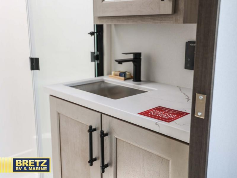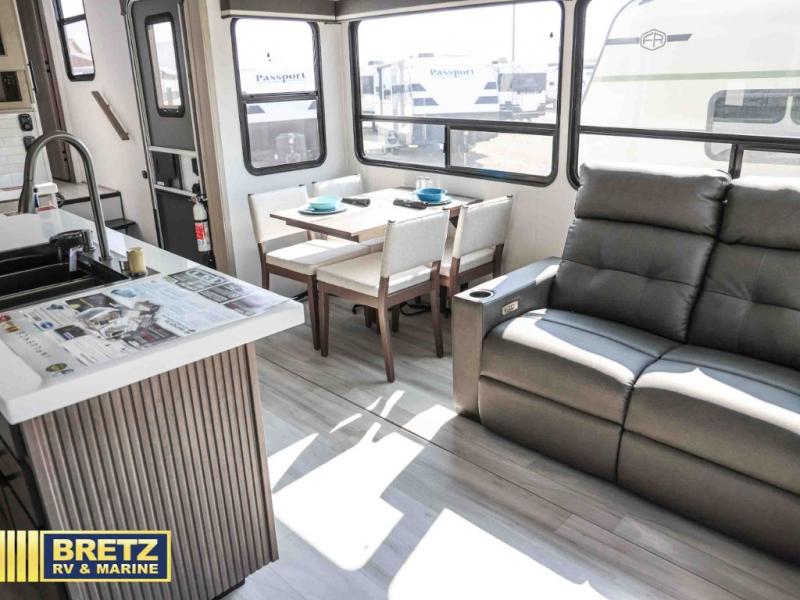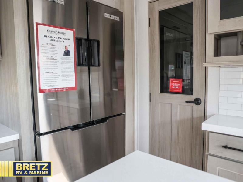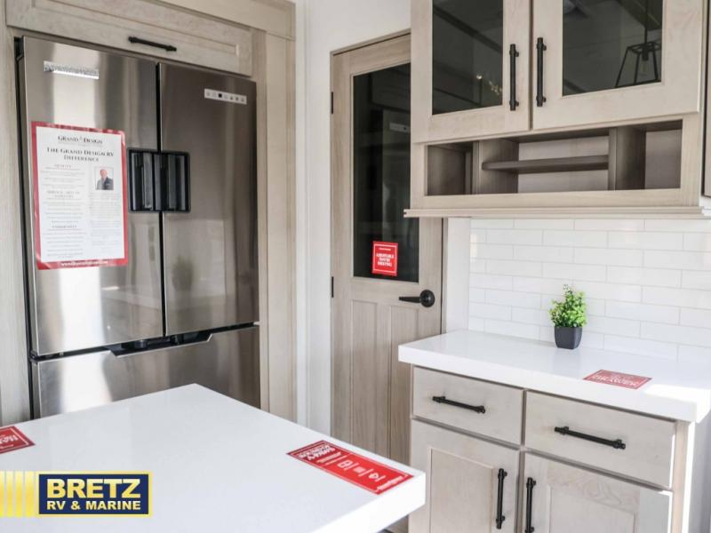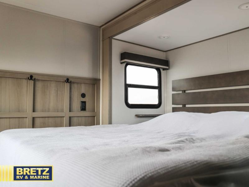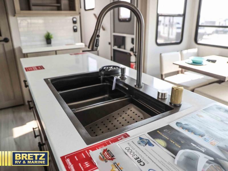 Any Grand Design Influence fifth wheel features five-sided aluminum cage construction with a walk-on roof and a fully enclosed underbelly with heated tanks and storage for all weather camping. For peace of mind, the MORryde CRE3000 Suspension system will provide safe and smooth towing, and the 101" widebody construction offers all the room you need and that is before multiple slides are fully engaged. You will appreciate the Keyed-Alike locks, slam-latch baggage doors with magnetic door catches, exterior security light, and SolidStep entry steps. On the inside, Congoleum flooring, premium roller shades for privacy, a hallway handrail for safety, and nightstands with USB ports to keep all of your electronics fully charged. You will also love the On Demand tankless water heater when showering, plus the added heat and ambiance from an electric fireplace, and so much more!