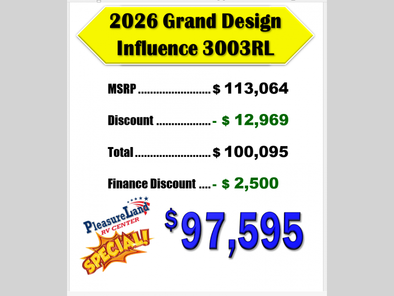 New 2026 Grand Design Influence 3003RL Fifth Wheel