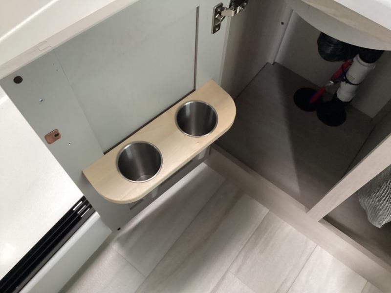 Expands both living and kitchen zones for a roomy interior feel without exceeding towing width. -