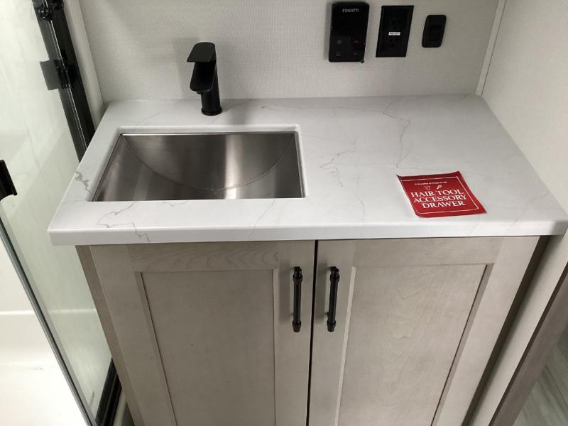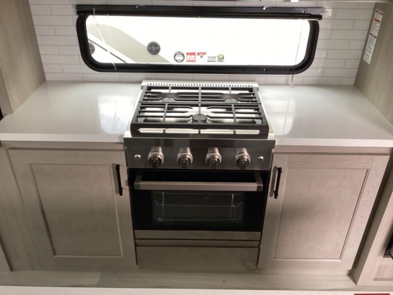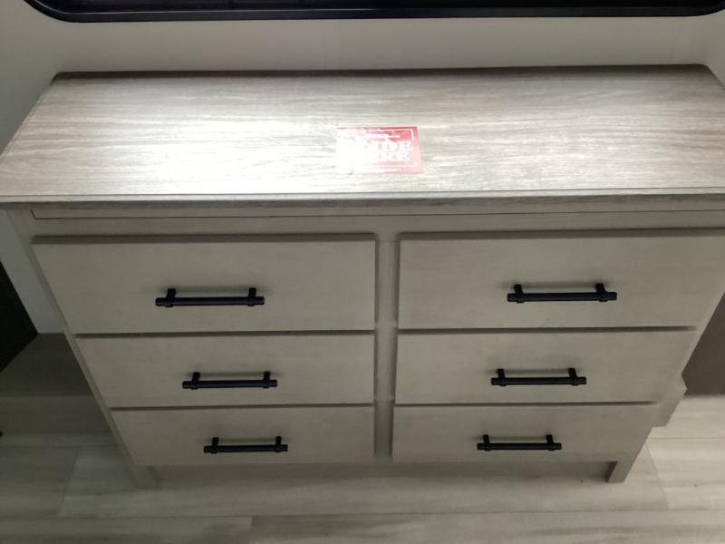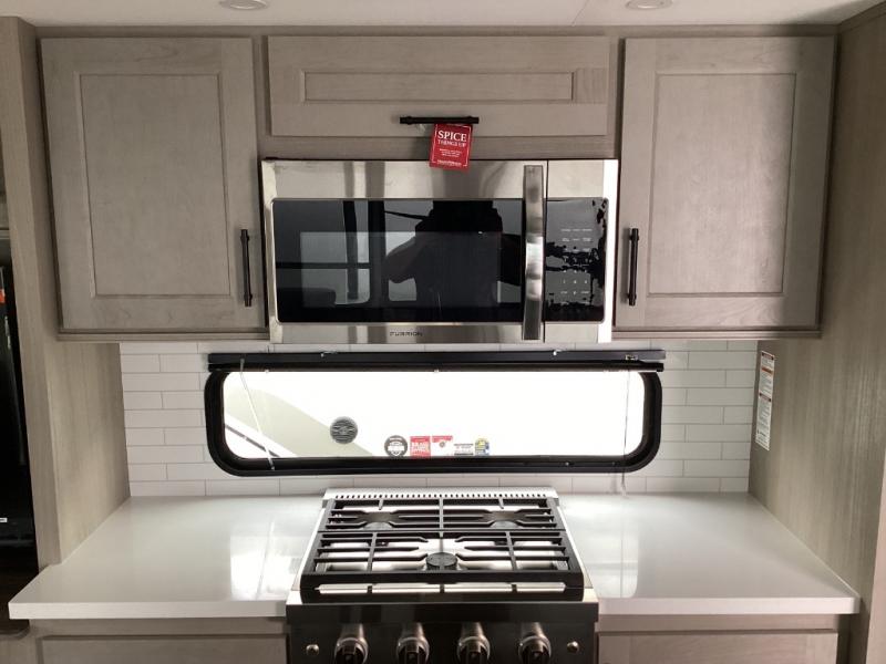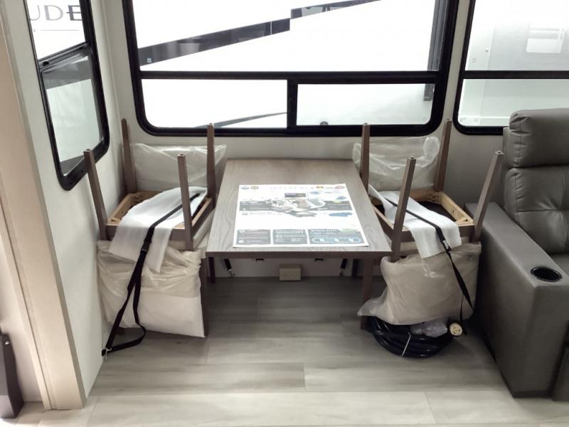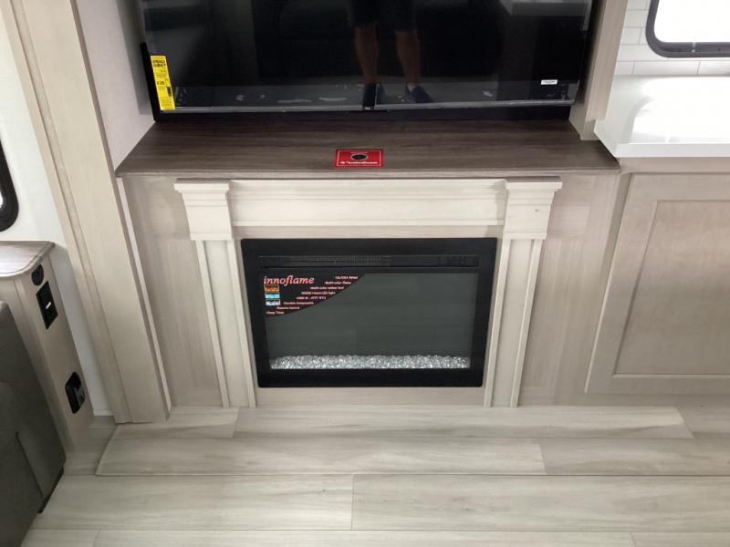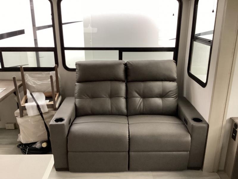 It delivers upscale comfort and family-friendly layout in a towable, reliable package. The lounge-style living room, prep-ready kitchen, and thoughtful conveniences make this fifth wheel perfect for campsite entertaining or quiet relaxation after a busy day exploring.