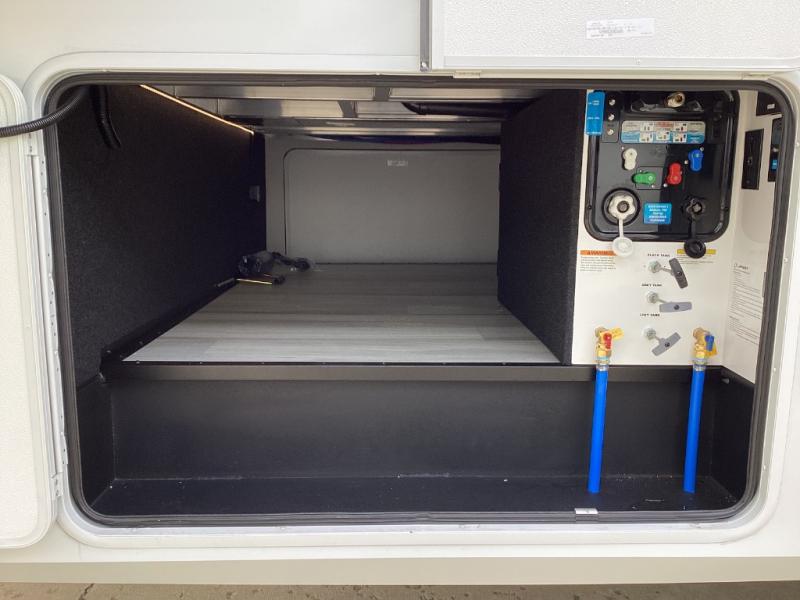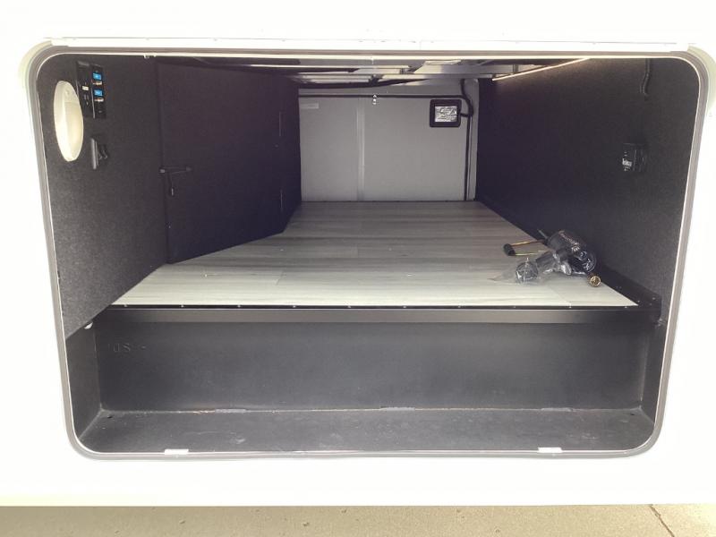 Dual power awnings with LED lighting, pass-through storage, slam-latch baggage doors, and integrated docking station make setup and storage seamless. -