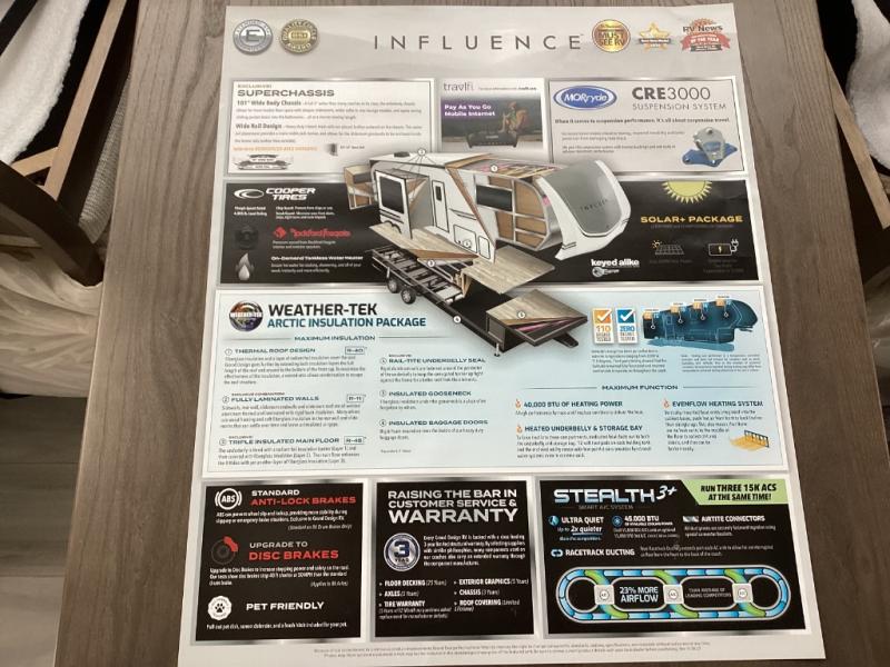 Designed for travelers who expect elegance and capability, the Influence 3003RL merges high-end amenities, durable engineering, and versatile layout in a towable fifth wheel.