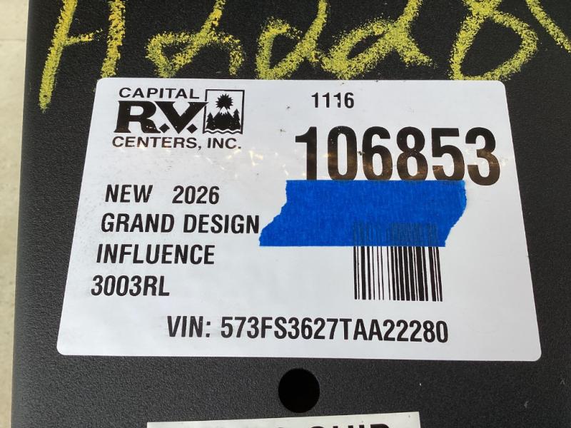 New 2026 Grand Design Influence 3003RL Fifth Wheel
