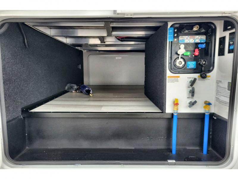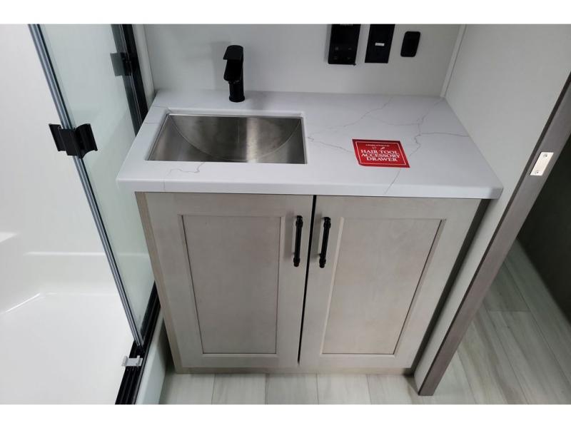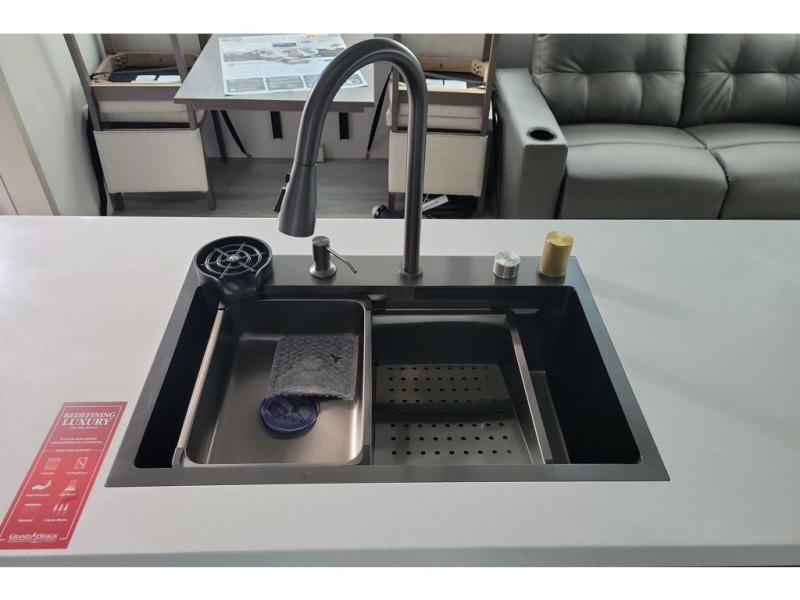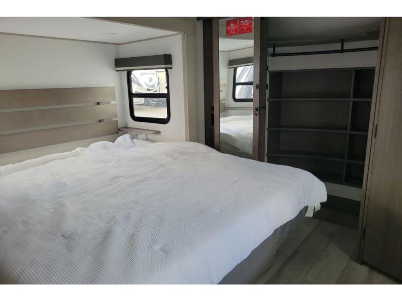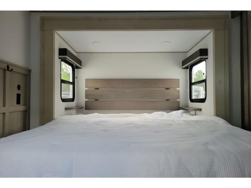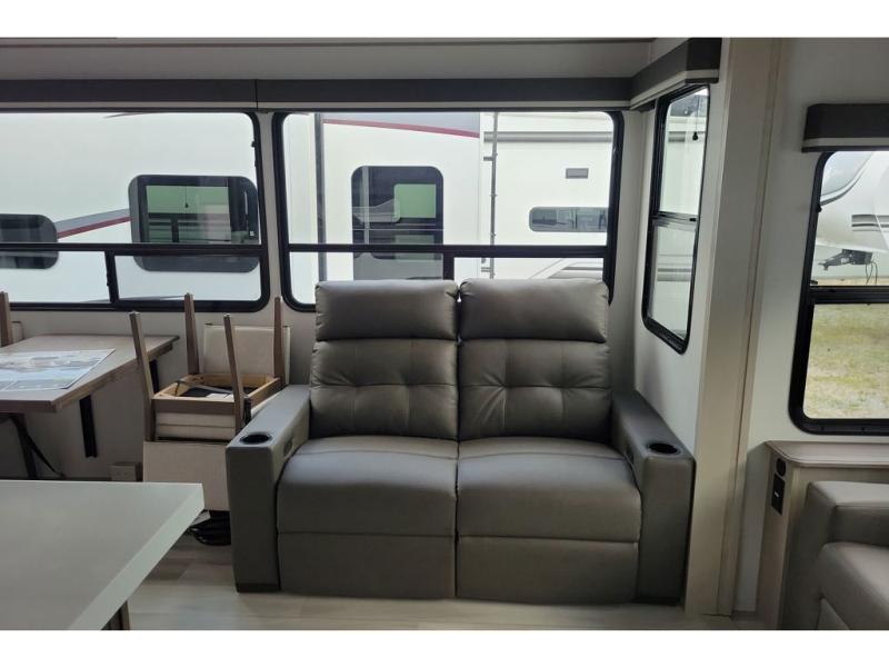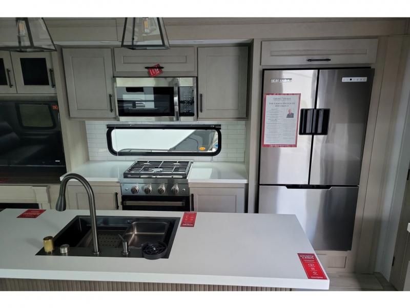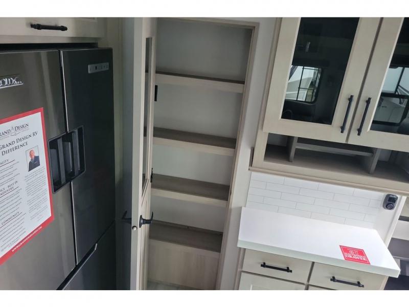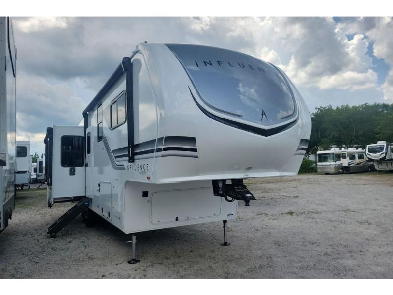Any Grand Design Influence fifth wheel features five-sided aluminum cage construction with a walk-on roof and a fully enclosed underbelly with heated tanks and storage for all weather camping. For peace of mind, the MORryde CRE3000 Suspension system will provide safe and smooth towing, and the 101" widebody construction offers all the room you need and that is before multiple slides are fully engaged. You will appreciate the Keyed-Alike locks, slam-latch baggage doors with magnetic door catches, exterior security light, and SolidStep entry steps. On the inside, Congoleum flooring, premium roller shades for privacy, a hallway handrail for safety, and nightstands with USB ports to keep all of your electronics fully charged. You will also love the On Demand tankless water heater when showering, plus the added heat and ambiance from an electric fireplace, and so much more!