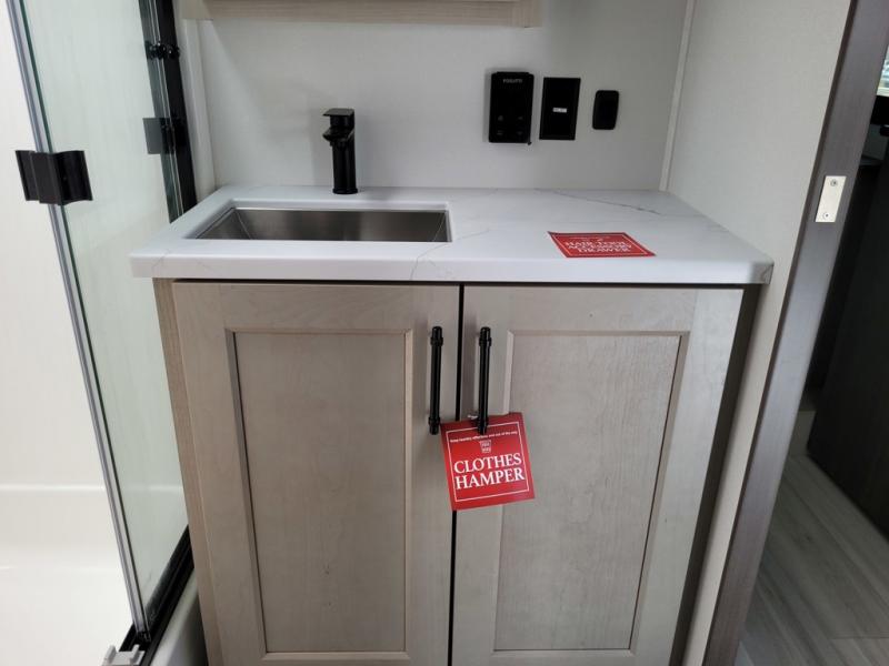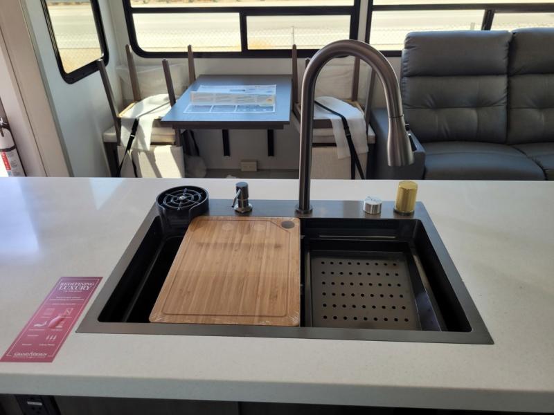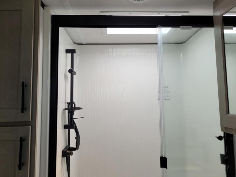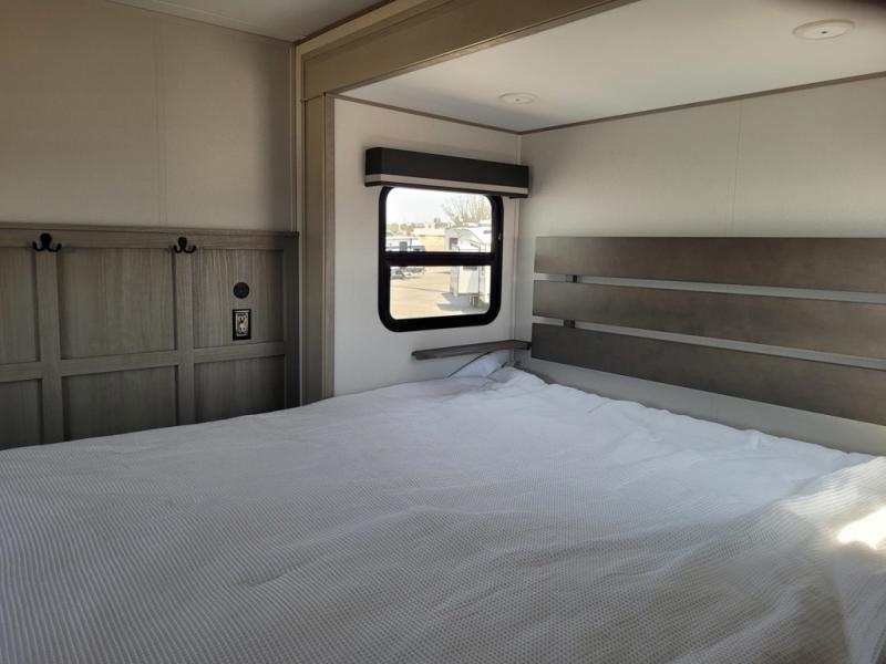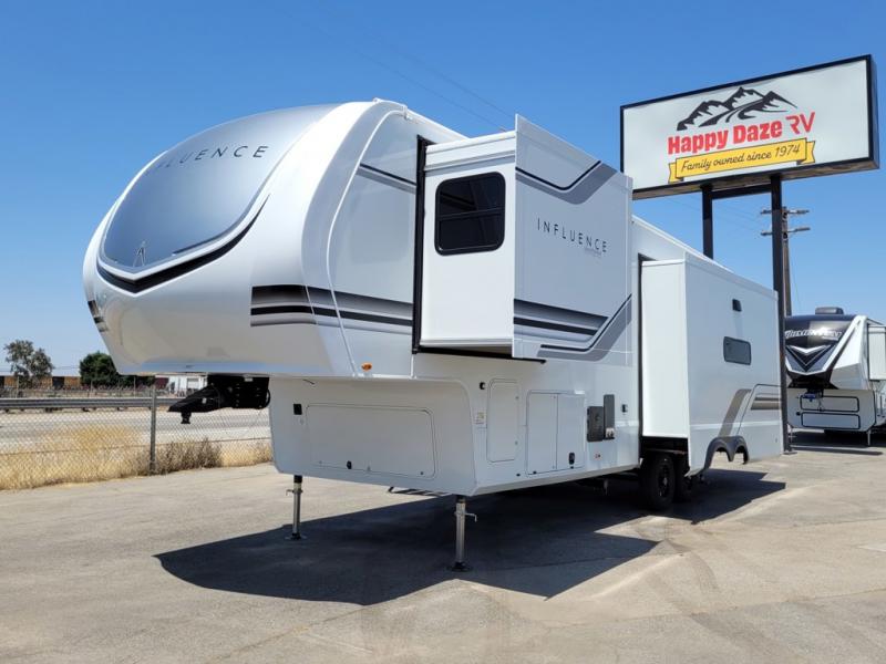 Any Grand Design Influence fifth wheel features five-sided aluminum cage construction with a walk-on roof and a fully enclosed underbelly with heated tanks and storage for all weather camping. For peace of mind, the MORryde CRE3000 Suspension system will provide safe and smooth towing, and the 101" widebody construction offers all the room you need and that is before multiple slides are fully engaged. You will appreciate the Keyed-Alike locks, slam-latch baggage doors with magnetic door catches, exterior security light, and SolidStep entry steps. On the inside, Congoleum flooring, premium roller shades for privacy, a hallway handrail for safety, and nightstands with USB ports to keep all of your electronics fully charged. You will also love the On Demand tankless water heater when showering, plus the added heat and ambiance from an electric fireplace, and so much more!