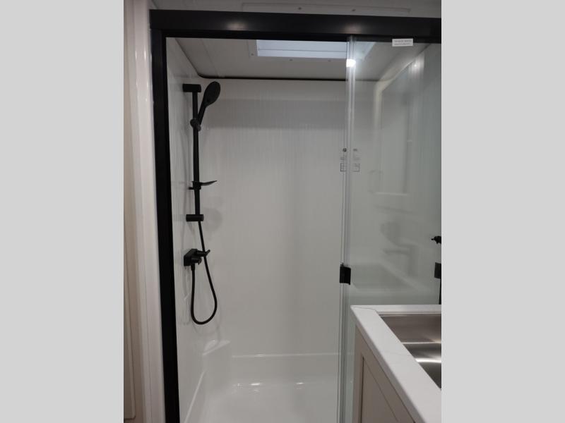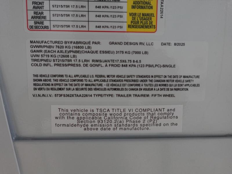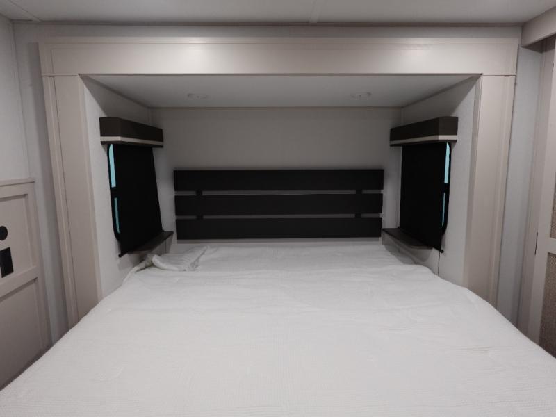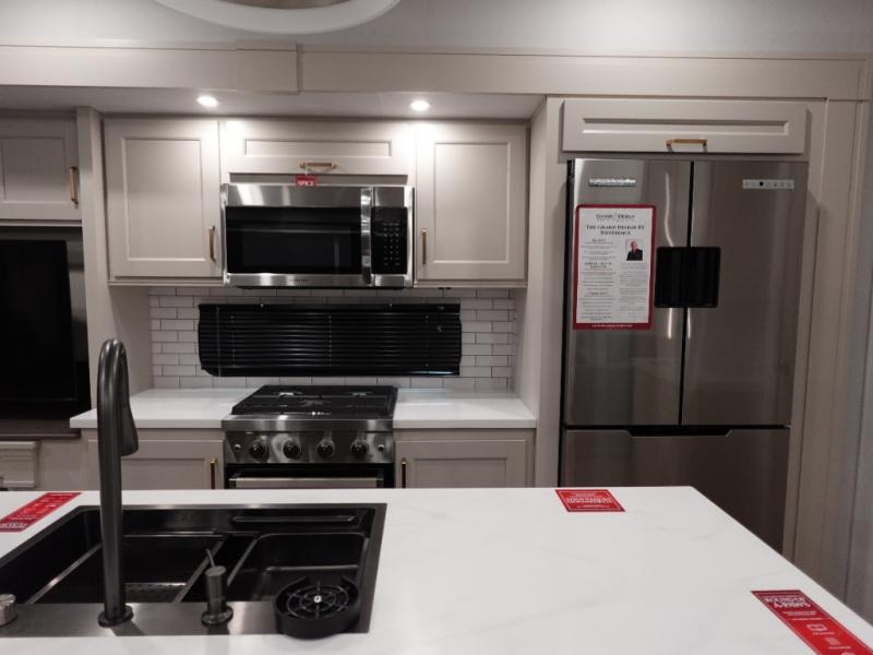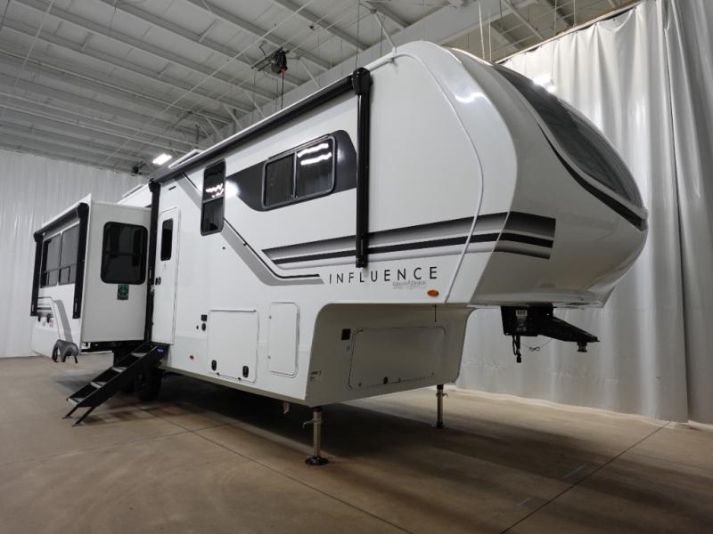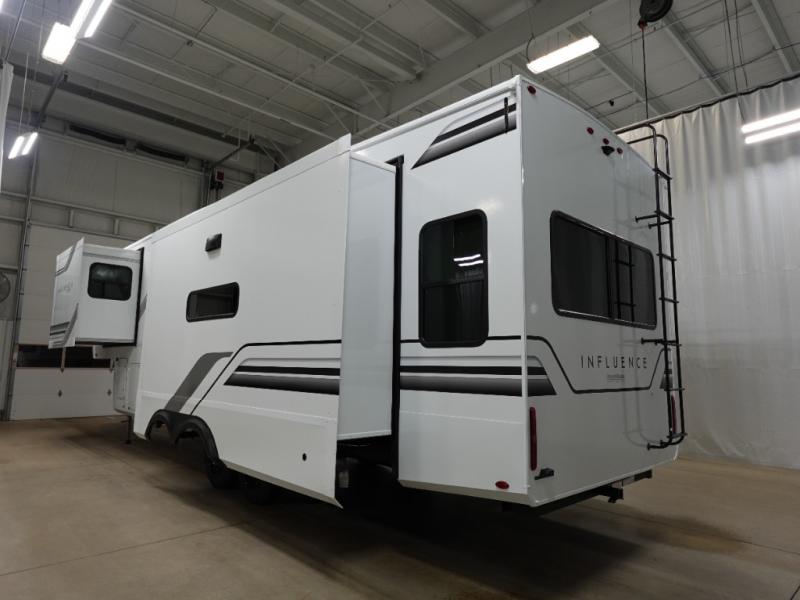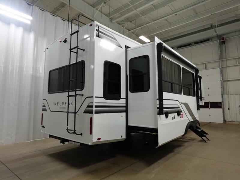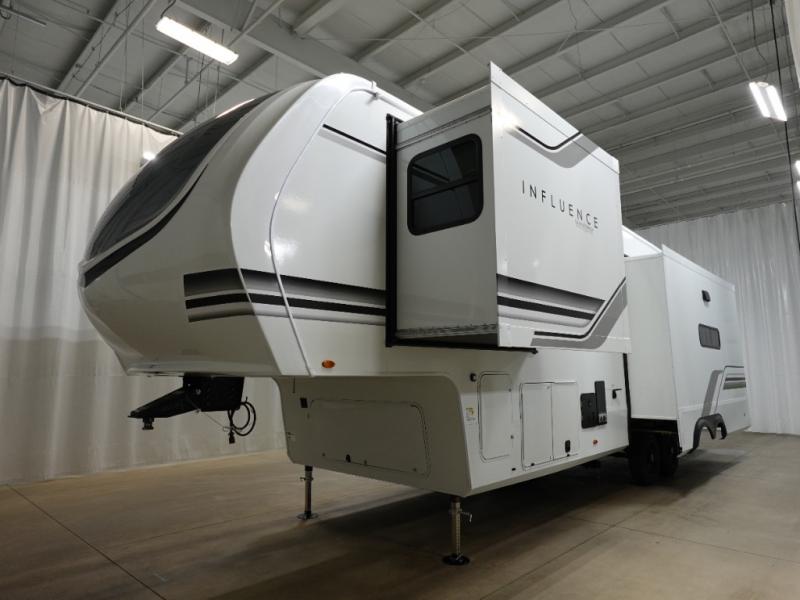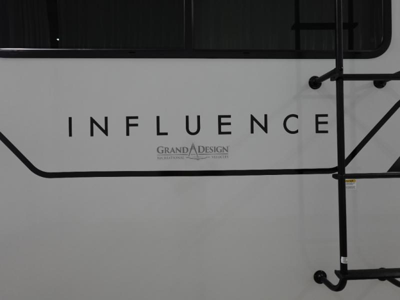 Any Grand Design Influence fifth wheel features five-sided aluminum cage construction with a walk-on roof and a fully enclosed underbelly with heated tanks and storage for all weather camping. For peace of mind, the MORryde CRE3000 Suspension system will provide safe and smooth towing, and the 101" widebody construction offers all the room you need and that is before multiple slides are fully engaged. You will appreciate the Keyed-Alike locks, slam-latch baggage doors with magnetic door catches, exterior security light, and SolidStep entry steps. On the inside, Congoleum flooring, premium roller shades for privacy, a hallway handrail for safety, and nightstands with USB ports to keep all of your electronics fully charged. You will also love the On Demand tankless water heater when showering, plus the added heat and ambiance from an electric fireplace, and so much more!