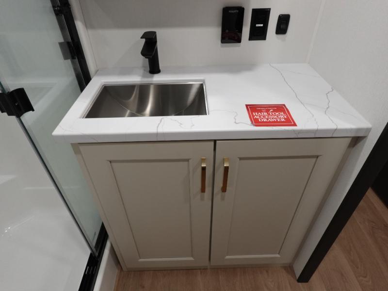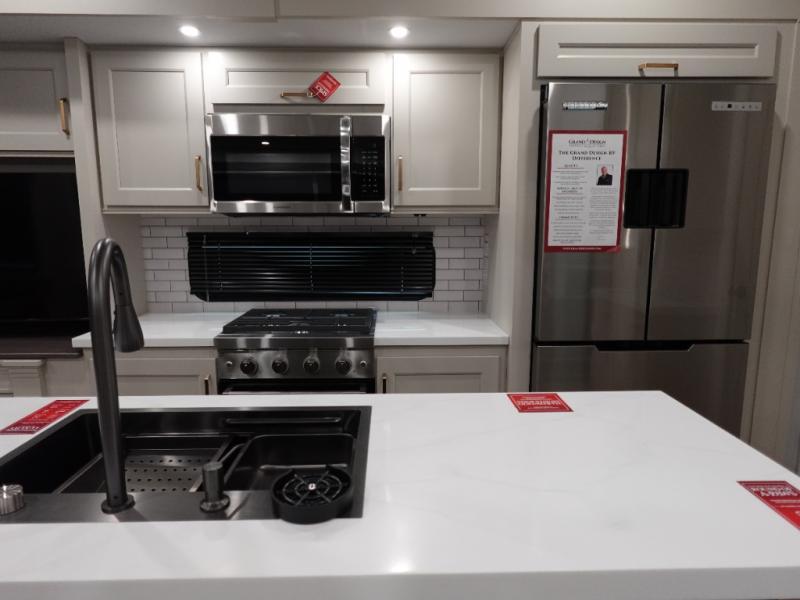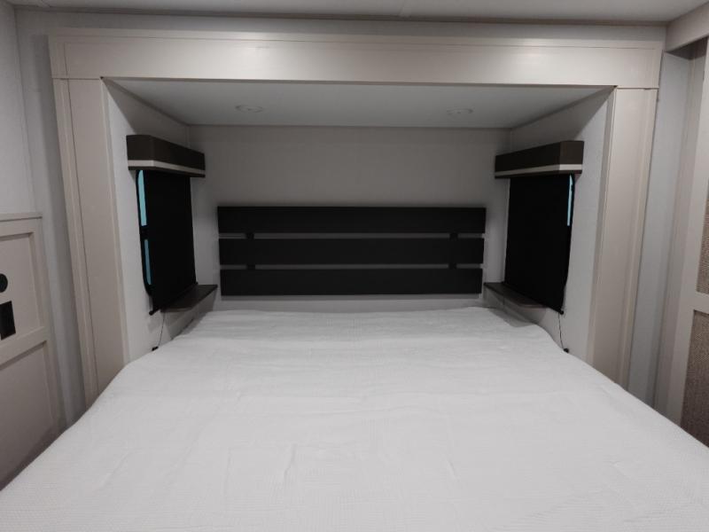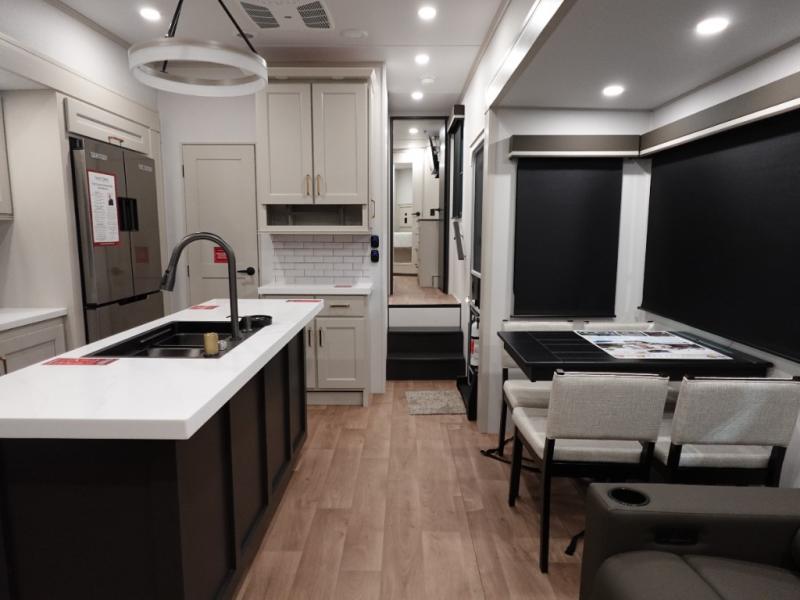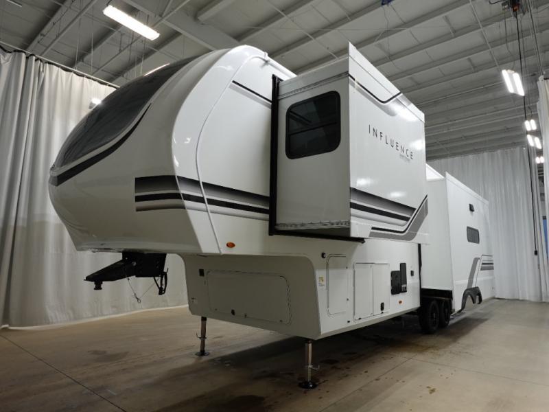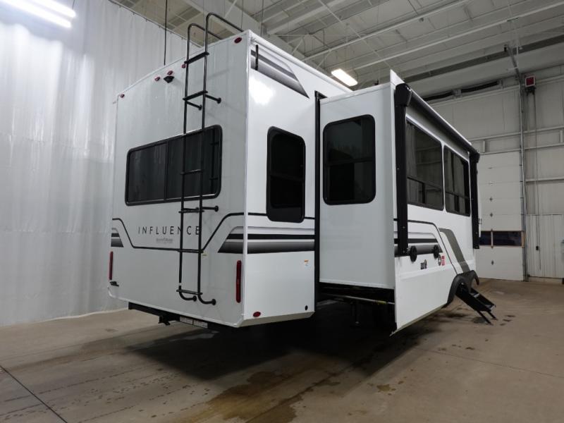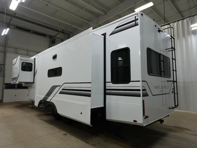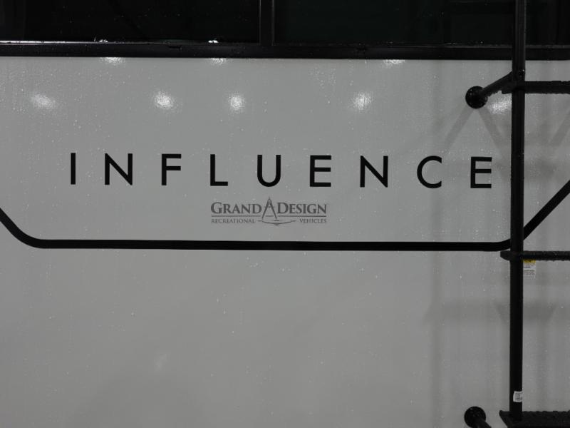 Any Grand Design Influence fifth wheel features five-sided aluminum cage construction with a walk-on roof and a fully enclosed underbelly with heated tanks and storage for all weather camping. For peace of mind, the MORryde CRE3000 Suspension system will provide safe and smooth towing, and the 101" widebody construction offers all the room you need and that is before multiple slides are fully engaged. You will appreciate the Keyed-Alike locks, slam-latch baggage doors with magnetic door catches, exterior security light, and SolidStep entry steps. On the inside, Congoleum flooring, premium roller shades for privacy, a hallway handrail for safety, and nightstands with USB ports to keep all of your electronics fully charged. You will also love the On Demand tankless water heater when showering, plus the added heat and ambiance from an electric fireplace, and so much more!