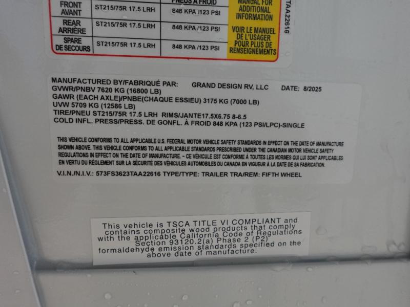 New 2026 Grand Design Influence 3003RL Fifth Wheel