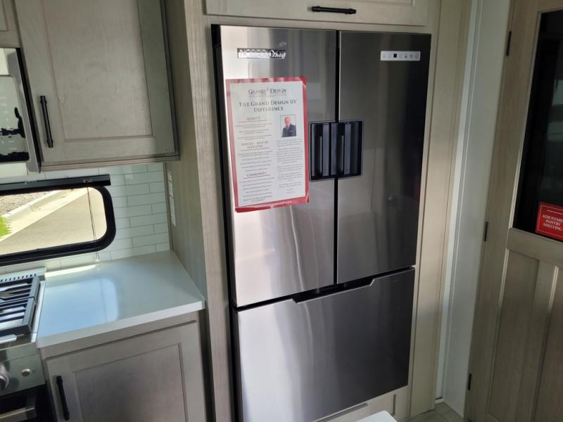 Any Grand Design Influence fifth wheel features five-sided aluminum cage construction with a walk-on roof and a fully enclosed underbelly with heated tanks and storage for all weather camping. For peace of mind, the MORryde CRE3000 Suspension system will provide safe and smooth towing, and the 101" widebody construction offers all the room you need and that is before multiple slides are fully engaged. You will appreciate the Keyed-Alike locks, slam-latch baggage doors with magnetic door catches, exterior security light, and SolidStep entry steps. On the inside, Congoleum flooring, premium roller shades for privacy, a hallway handrail for safety, and nightstands with USB ports to keep all of your electronics fully charged. You will also love the On Demand tankless water heater when showering, plus the added heat and ambiance from an electric fireplace, and so much more!