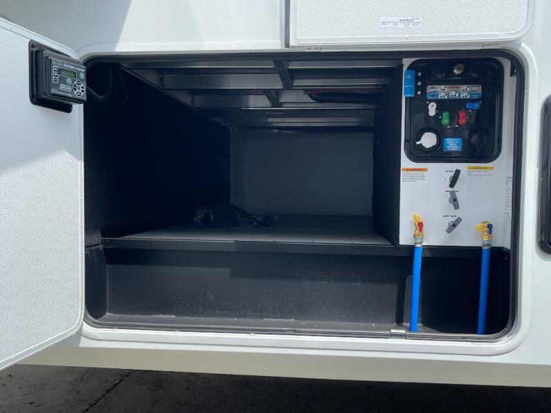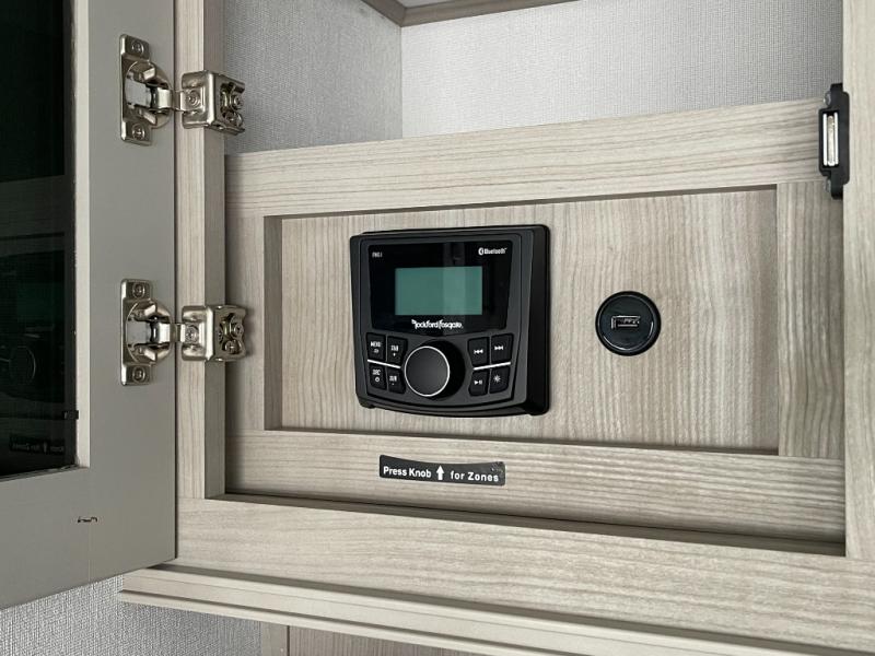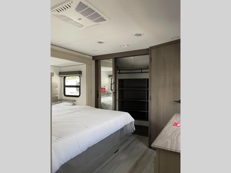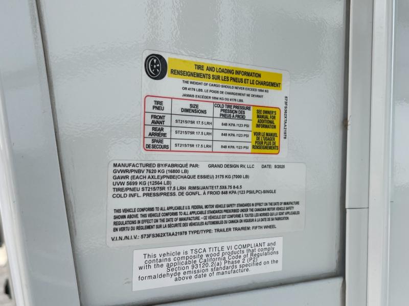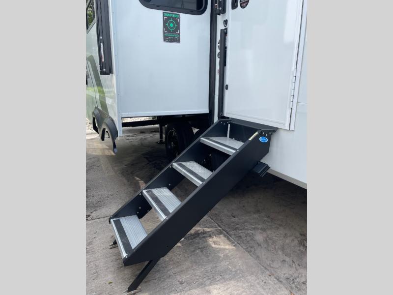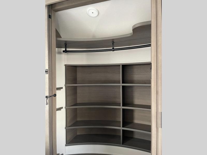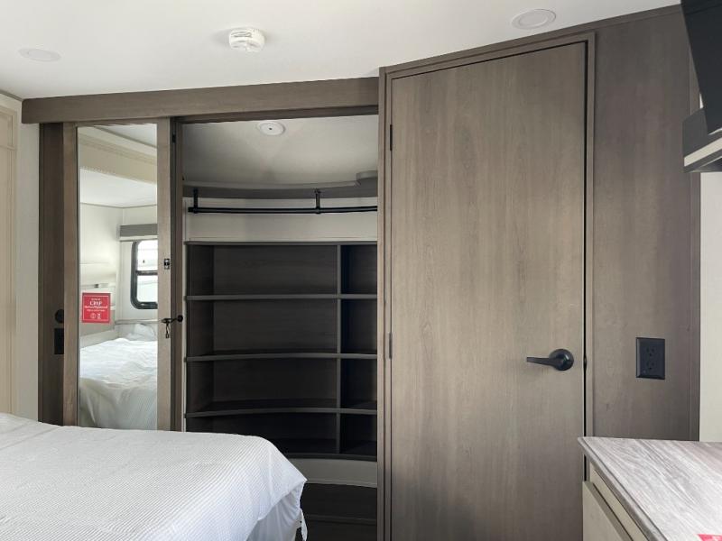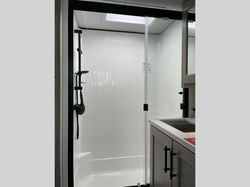 Any Grand Design Influence fifth wheel features five-sided aluminum cage construction with a walk-on roof and a fully enclosed underbelly with heated tanks and storage for all weather camping. For peace of mind, the MORryde CRE3000 Suspension system will provide safe and smooth towing, and the 101" widebody construction offers all the room you need and that is before multiple slides are fully engaged. You will appreciate the Keyed-Alike locks, slam-latch baggage doors with magnetic door catches, exterior security light, and SolidStep entry steps. On the inside, Congoleum flooring, premium roller shades for privacy, a hallway handrail for safety, and nightstands with USB ports to keep all of your electronics fully charged. You will also love the On Demand tankless water heater when showering, plus the added heat and ambiance from an electric fireplace, and so much more!