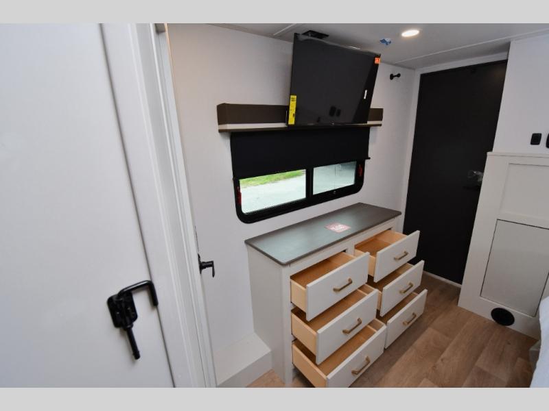 Experience the perfect blend of residential comfort and all-season capability in the 2026 Grand Design Influence 3003RL. The rear living layout invites you to relax with plush seating surrounded by panoramic windows and an electric fireplace, while the fully equipped kitchen with solid surface countertops and premium appliances makes meal prep a joy. The master suite features a king bed and ample wardrobe and under-bed storage, offering a private retreat wherever your travels take you.