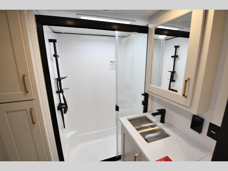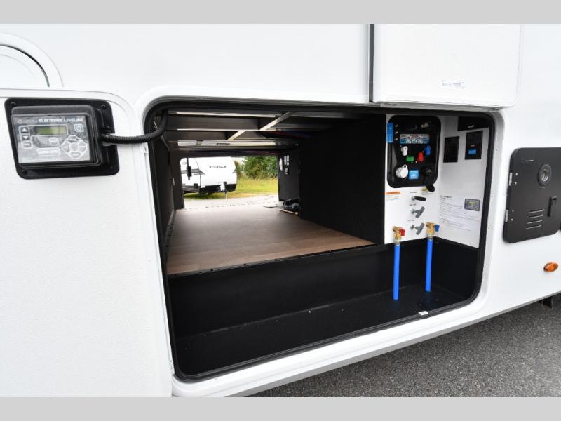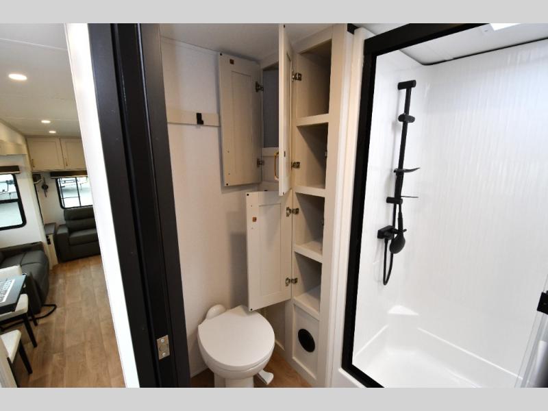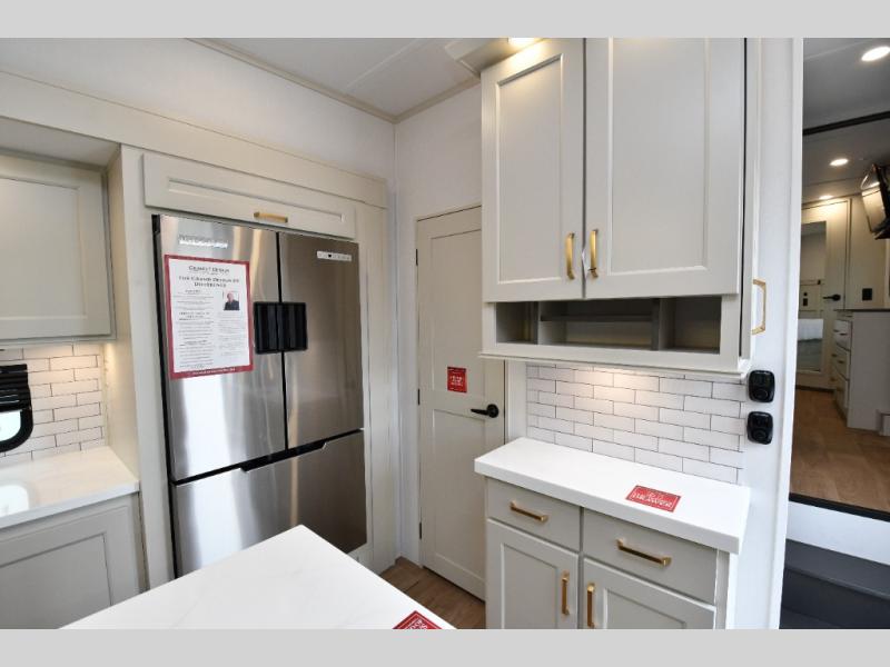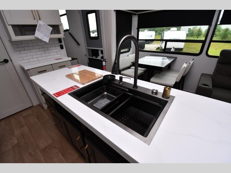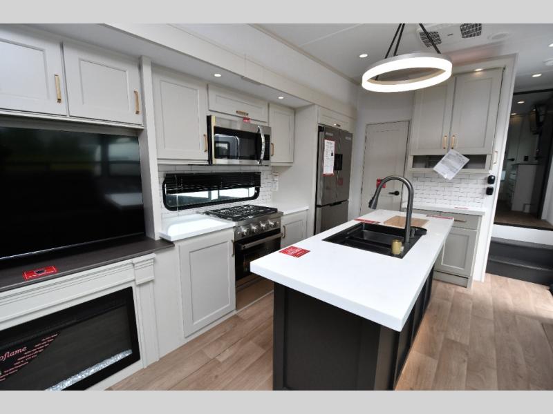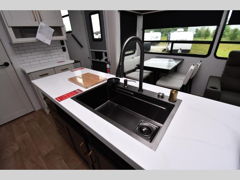 Built for long-term adventure, this fifth wheel includes the Max-Built Construction Package, Weather-Tek Package, and a fully enclosed heated underbelly for year-round use. The 6-Point Auto Leveling System makes setup simple, dual A/C units keep the interior comfortable, and a second patio awning expands your outdoor living space. Thoughtful touches like the Residential Living and Peace of Mind Packages make every journey easier, while quality craftsmanship ensures reliability for years to come.