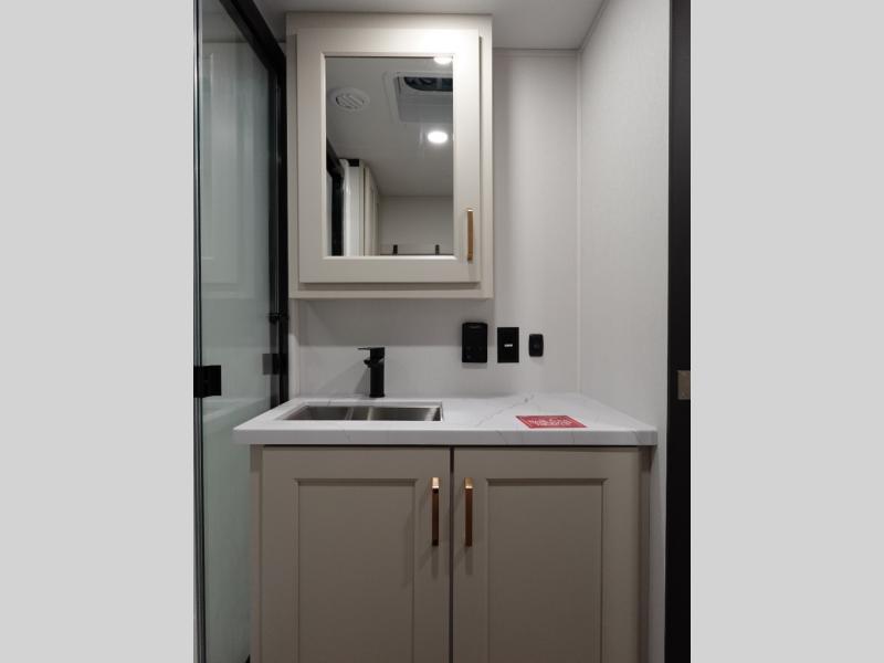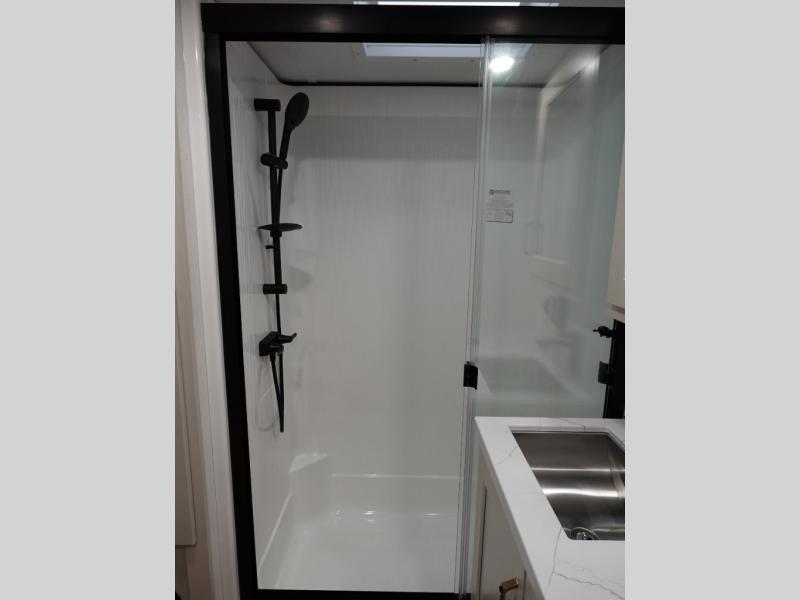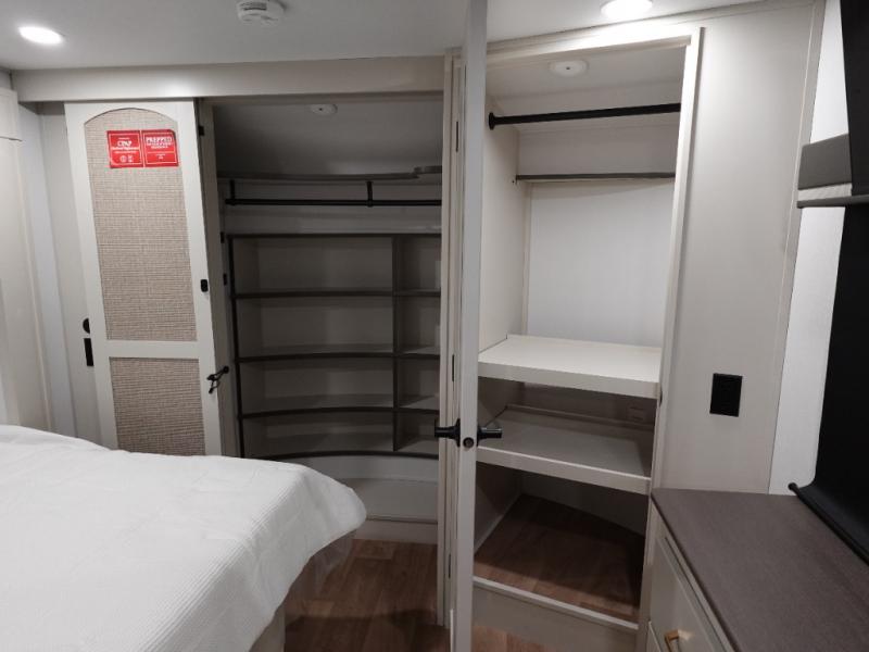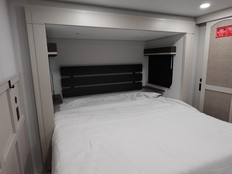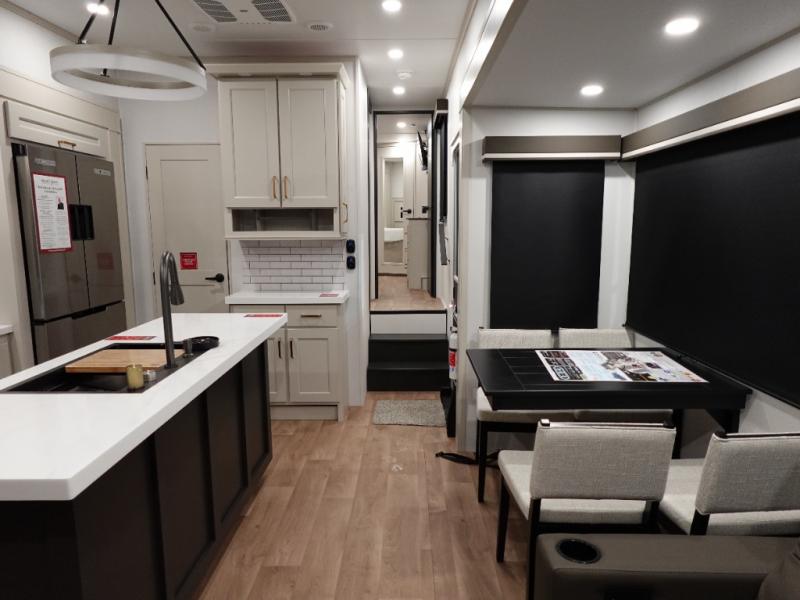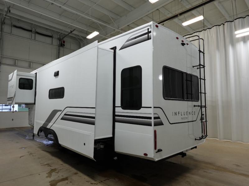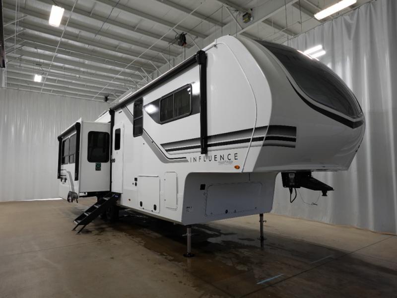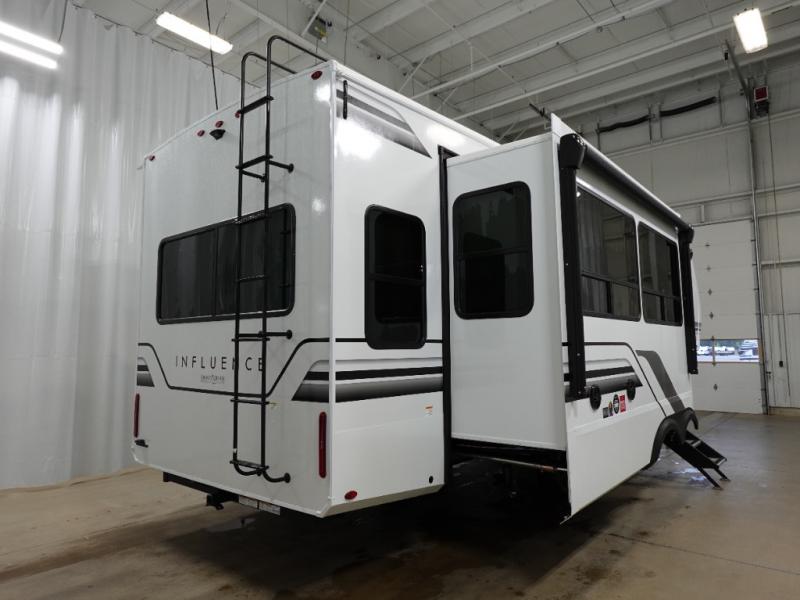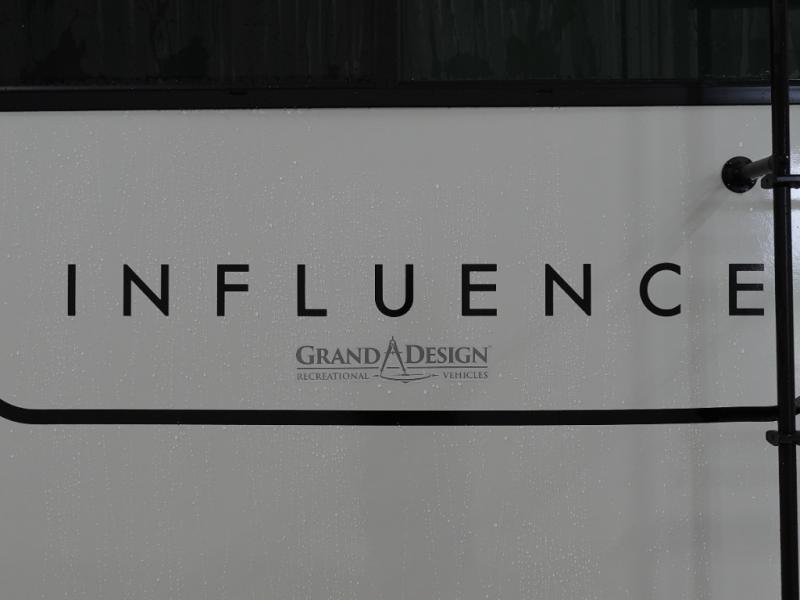 Any Grand Design Influence fifth wheel features five-sided aluminum cage construction with a walk-on roof and a fully enclosed underbelly with heated tanks and storage for all weather camping. For peace of mind, the MORryde CRE3000 Suspension system will provide safe and smooth towing, and the 101" widebody construction offers all the room you need and that is before multiple slides are fully engaged. You will appreciate the Keyed-Alike locks, slam-latch baggage doors with magnetic door catches, exterior security light, and SolidStep entry steps. On the inside, Congoleum flooring, premium roller shades for privacy, a hallway handrail for safety, and nightstands with USB ports to keep all of your electronics fully charged. You will also love the On Demand tankless water heater when showering, plus the added heat and ambiance from an electric fireplace, and so much more!