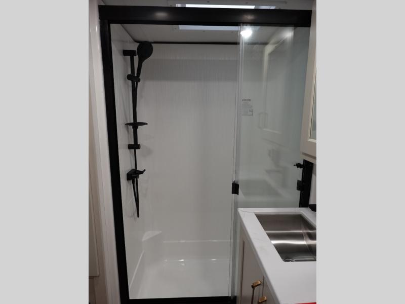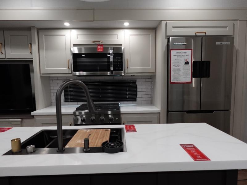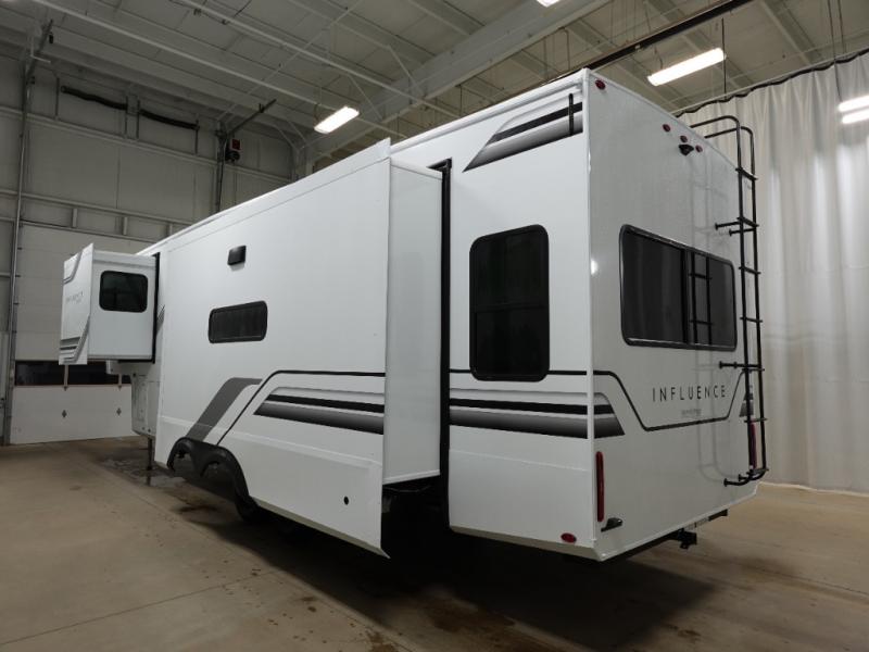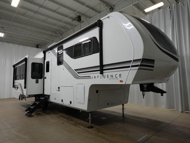Any Grand Design Influence fifth wheel features five-sided aluminum cage construction with a walk-on roof and a fully enclosed underbelly with heated tanks and storage for all weather camping. For peace of mind, the MORryde CRE3000 Suspension system will provide safe and smooth towing, and the 101" widebody construction offers all the room you need and that is before multiple slides are fully engaged. You will appreciate the Keyed-Alike locks, slam-latch baggage doors with magnetic door catches, exterior security light, and SolidStep entry steps. On the inside, Congoleum flooring, premium roller shades for privacy, a hallway handrail for safety, and nightstands with USB ports to keep all of your electronics fully charged. You will also love the On Demand tankless water heater when showering, plus the added heat and ambiance from an electric fireplace, and so much more!