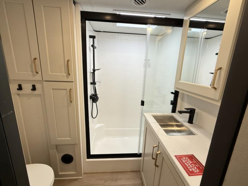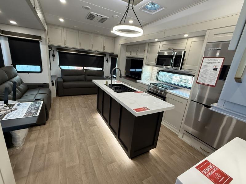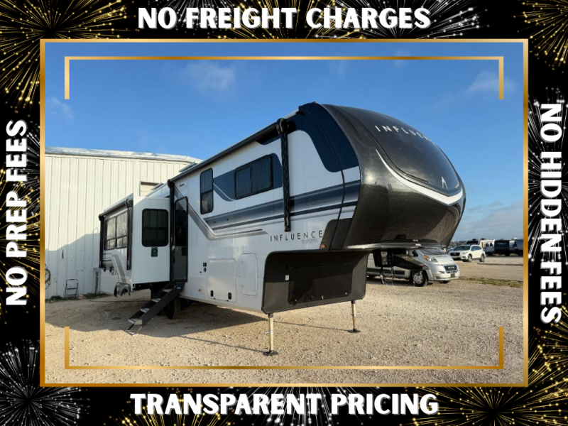 Any Grand Design Influence fifth wheel features five-sided aluminum cage construction with a walk-on roof and a fully enclosed underbelly with heated tanks and storage for all weather camping. For peace of mind, the MORryde CRE3000 Suspension system will provide safe and smooth towing, and the 101" widebody construction offers all the room you need and that is before multiple slides are fully engaged. You will appreciate the Keyed-Alike locks, slam-latch baggage doors with magnetic door catches, exterior security light, and SolidStep entry steps. On the inside, Congoleum flooring, premium roller shades for privacy, a hallway handrail for safety, and nightstands with USB ports to keep all of your electronics fully charged. You will also love the On Demand tankless water heater when showering, plus the added heat and ambiance from an electric fireplace, and so much more!