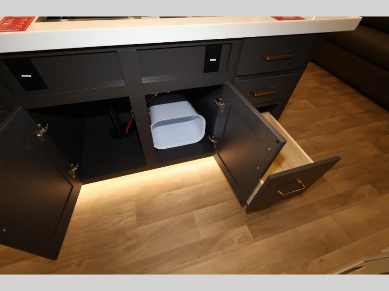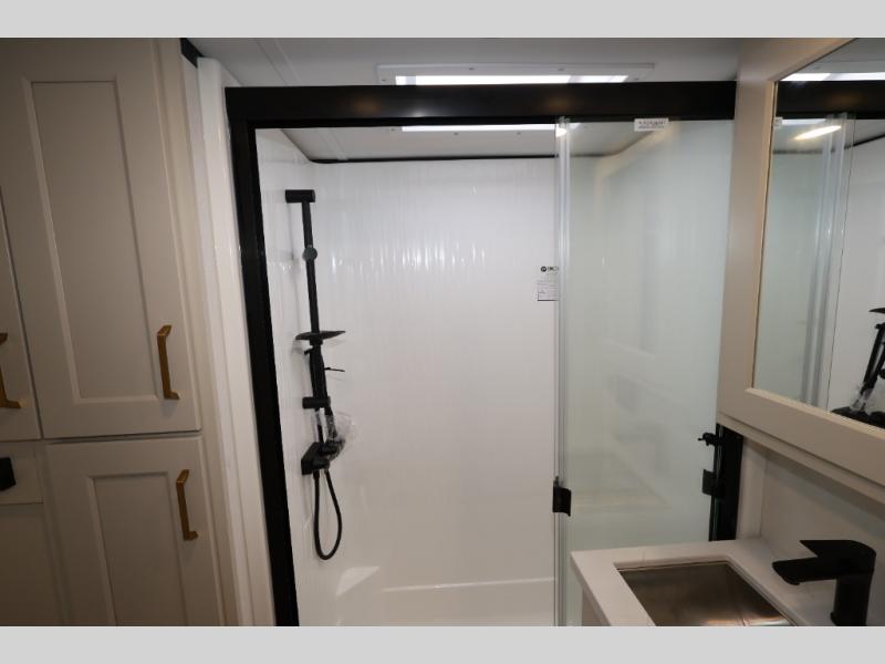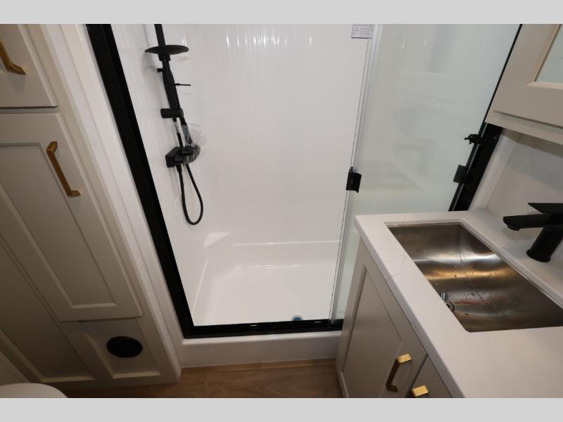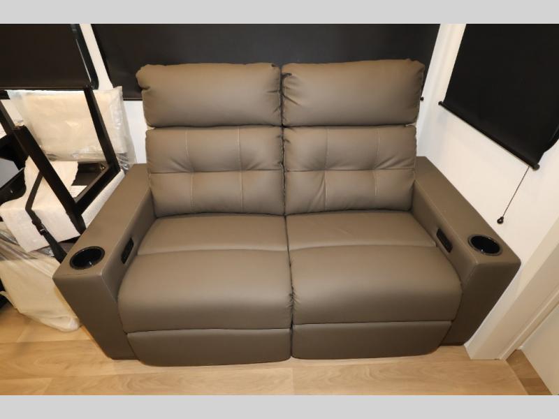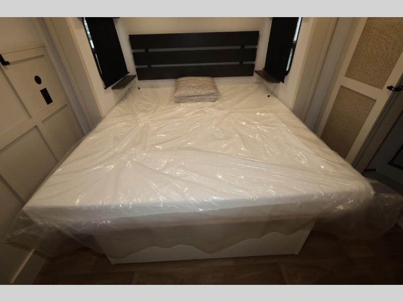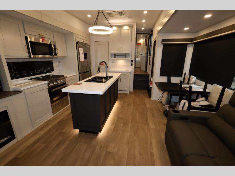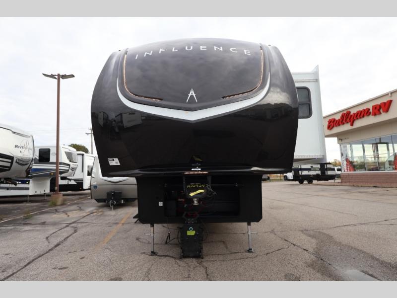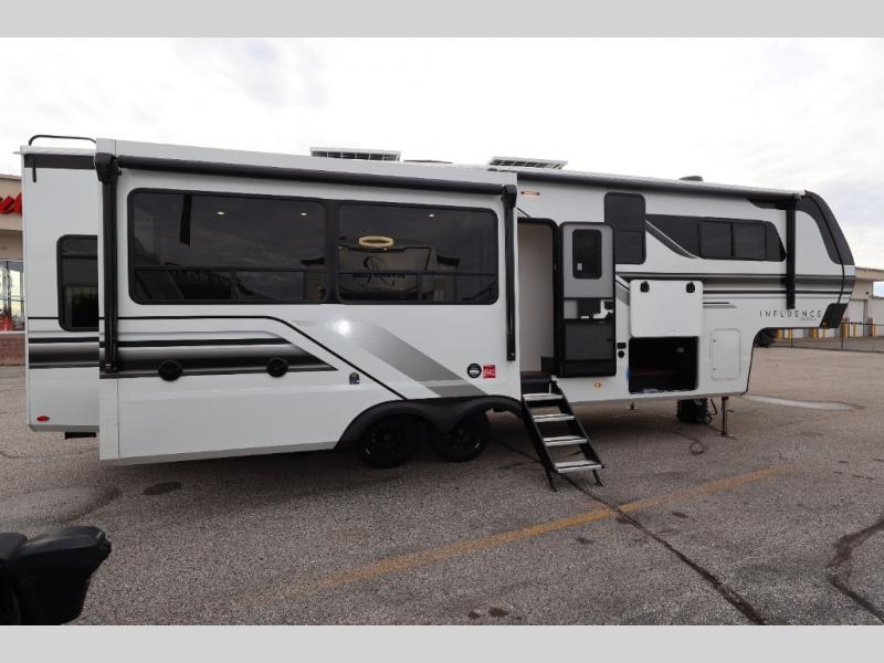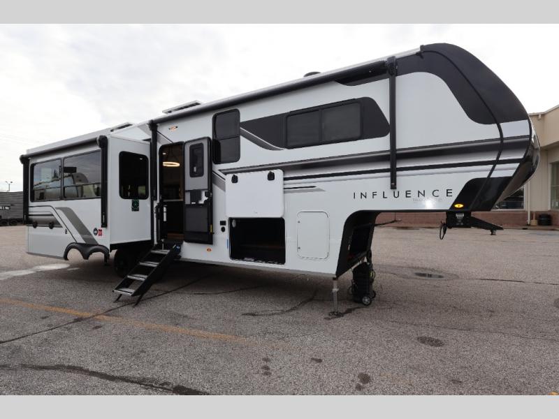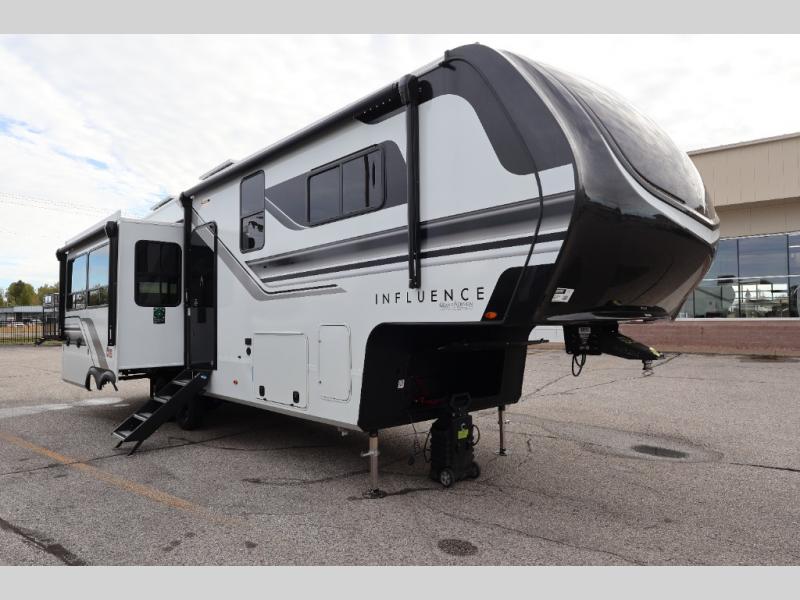 Any Grand Design Influence fifth wheel features five-sided aluminum cage construction with a walk-on roof and a fully enclosed underbelly with heated tanks and storage for all weather camping. For peace of mind, the MORryde CRE3000 Suspension system will provide safe and smooth towing, and the 101" widebody construction offers all the room you need and that is before multiple slides are fully engaged. You will appreciate the Keyed-Alike locks, slam-latch baggage doors with magnetic door catches, exterior security light, and SolidStep entry steps. On the inside, Congoleum flooring, premium roller shades for privacy, a hallway handrail for safety, and nightstands with USB ports to keep all of your electronics fully charged. You will also love the On Demand tankless water heater when showering, plus the added heat and ambiance from an electric fireplace, and so much more!